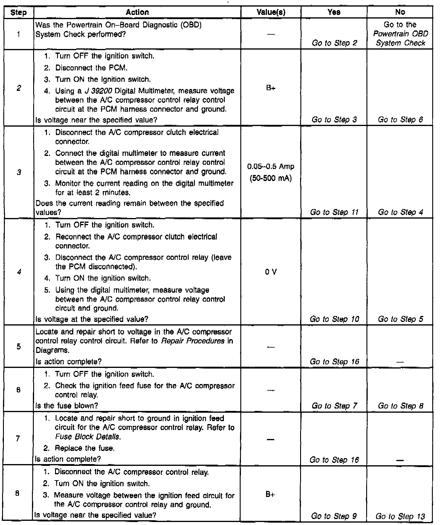 ^ An improper voltage level has been detected on ODM B output 4 (the A/C compressor control relay driver circuit).