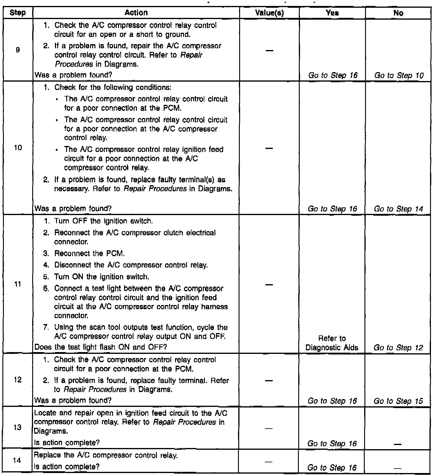 Numbers(s) below refer to the step number(s) on the Diagnostic Table.