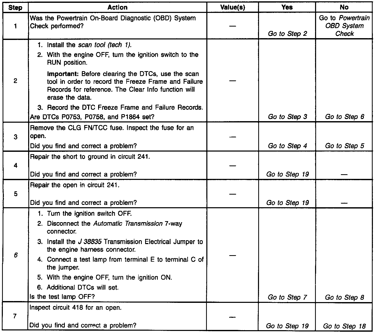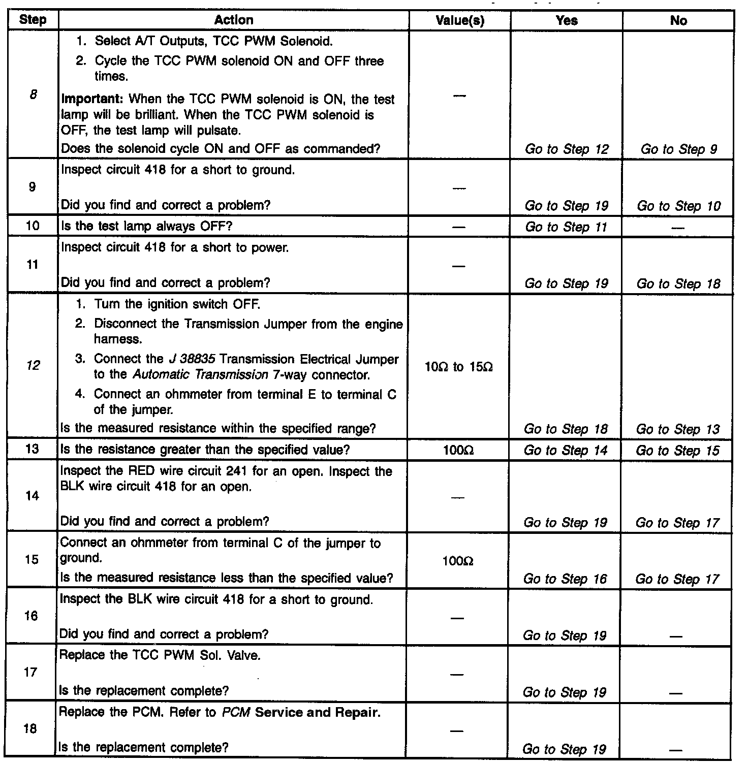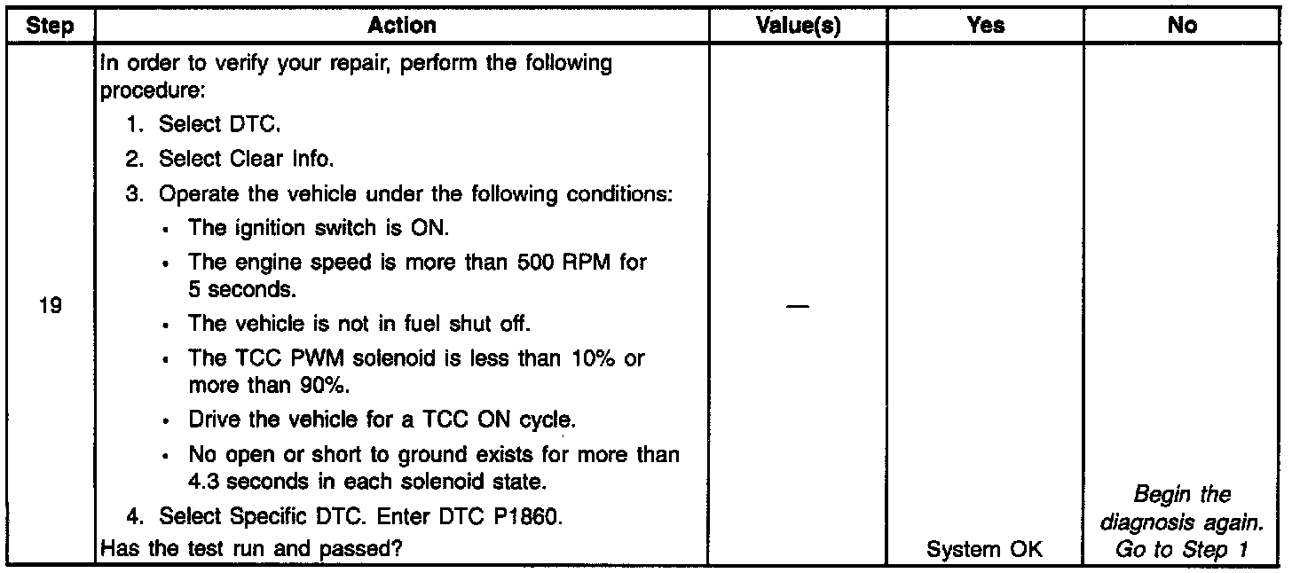 12. This Step verifies that the TCC PWM solenoid is not shorted across its windings or increased its resistance.