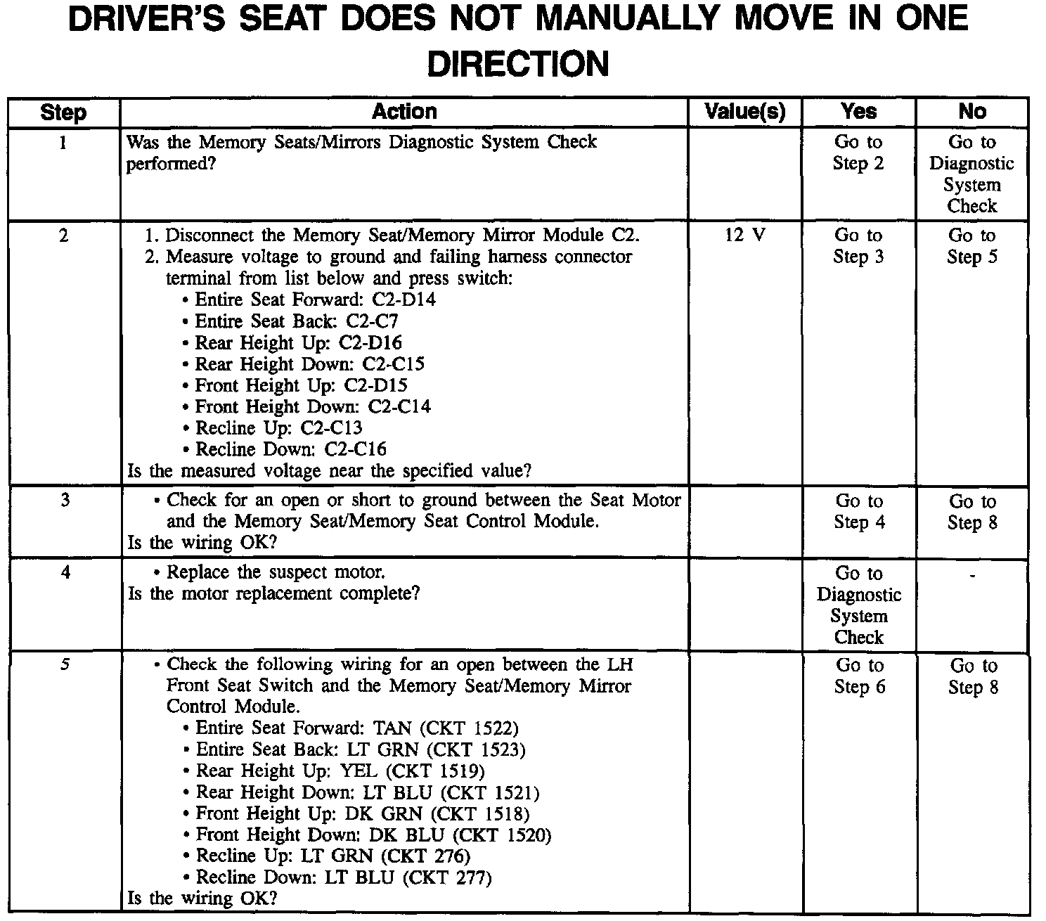 Driver's Seat Does Not Manually Move In One Direction (Part 2 Of 2):