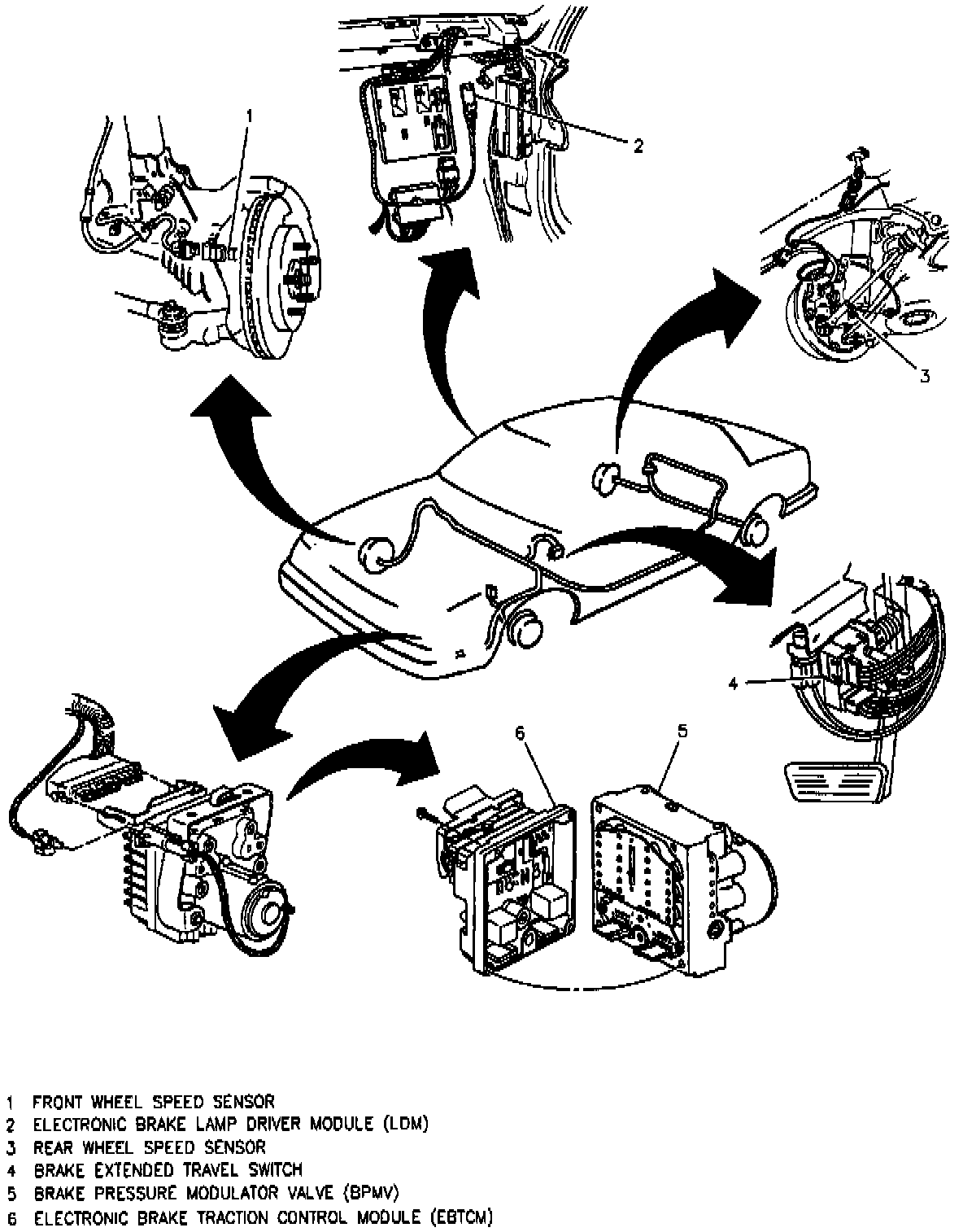 The purpose of the anti-lock brake system, Fig. 3, is to prevent wheel lock-up under heavy braking conditions on virtually any road surface. When a wheel locking condition exists, the Pressure Modulator Valve (PMV) assembly isolates each wheel's hydraulic circuit, then begins modulation of fluid pressure according to wheel speed inputs to the Electronic Brake Control Module (EBCM) or Electronic Brake and Traction Control Module (EBTCM). The PMV is controlled by the EBCM.