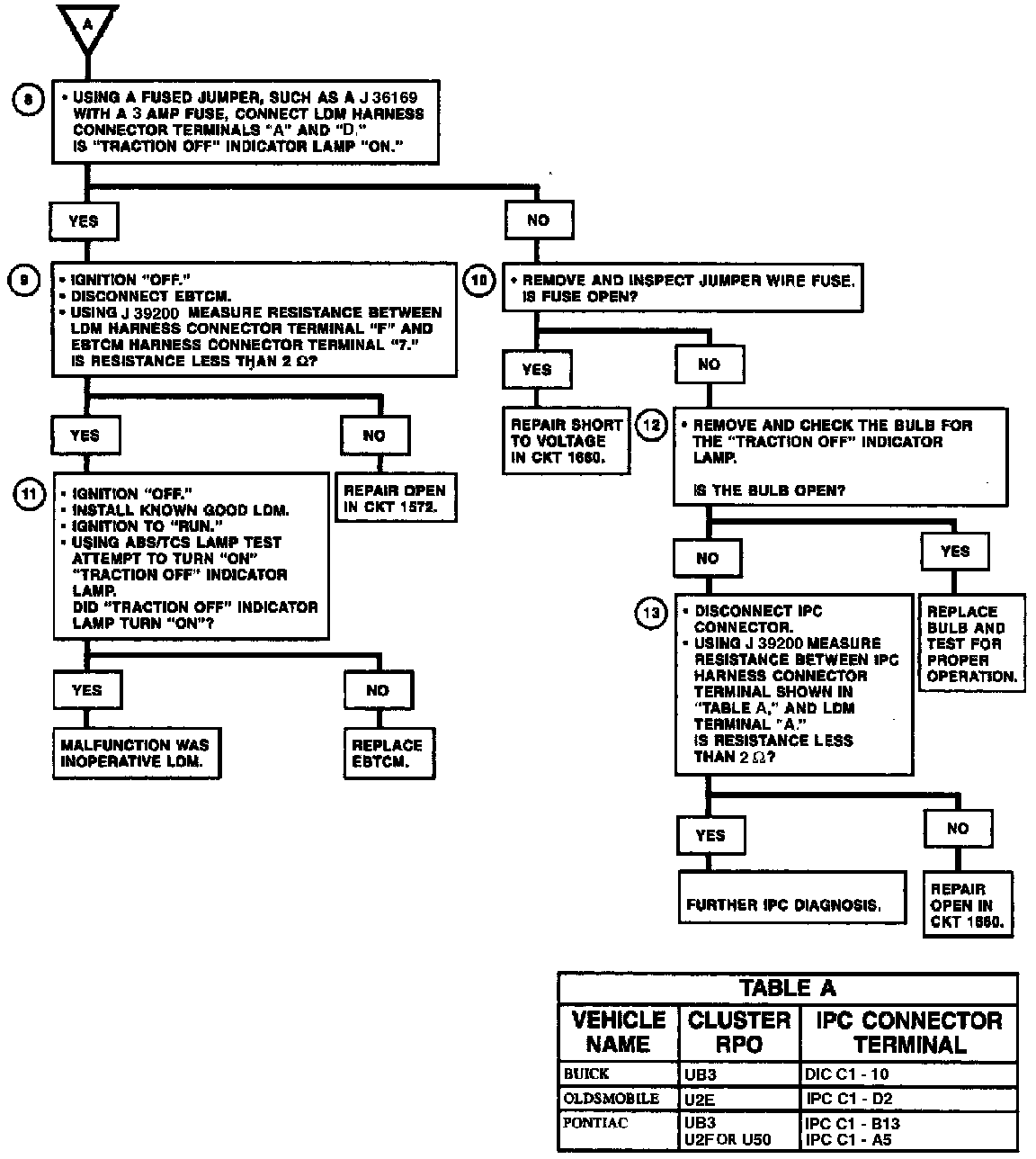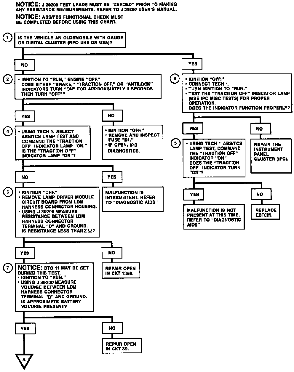 11. Verifies that a known good LDM turns the "TRACTION OFF" indicator "ON" using the Tech 1 ABS/TCS Lamp Test.