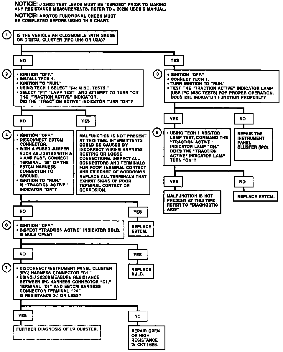 2. Uses the Tech 1 Lamp test to check the "TRACTION ACTIVE" indicator circuit.