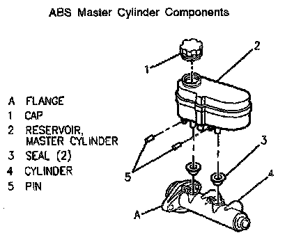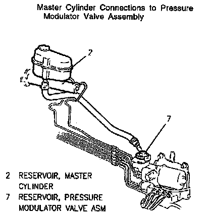 3. Reservoir hose from master cylinder. Plug hose to prevent fluid lost and contamination.