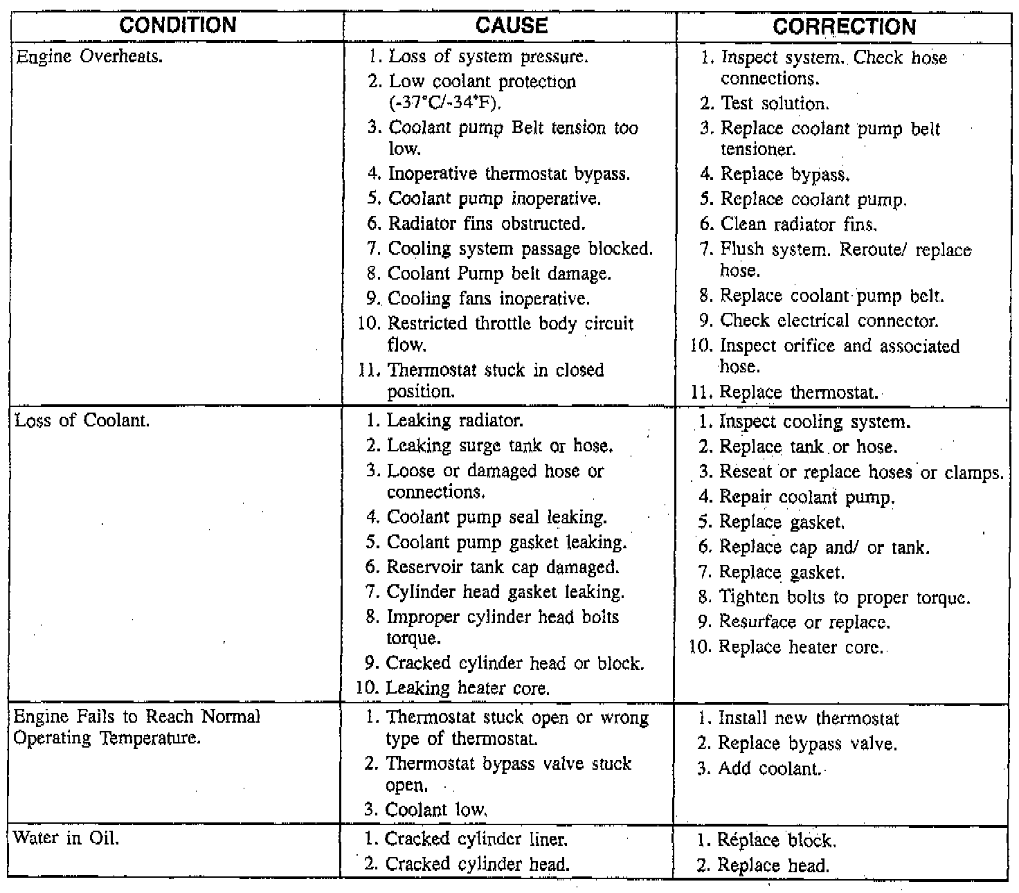 If the pressure in the cooling system is too low, or if the coolant does not contain enough ethylene glycol antifreeze, the coolant will boil without an overheat indication. Pure water can boil at 119°C (247°F) and the "TEMP" indicator will not show an overheat temperature, even with a 103 kPa (15 psi) cooling system. Refer to the Coolant Pressure/Temperature chart. Pure water lacks the necessary rust Inhibitors and coolant pump lubricant. The engine should never be run without the cap, or with the cap loose, as the coolant will boil before the temperature display shows a high temperature reading.
