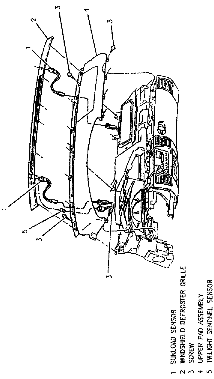 2. Pry defroster grill upward and remove sunload and twilight sentinel sensors.