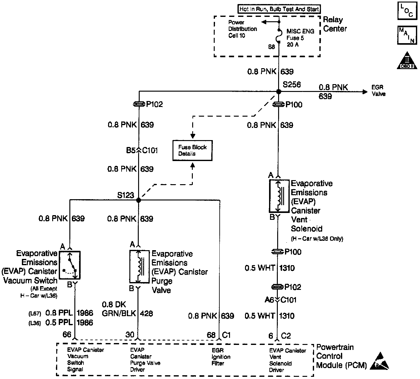 ^ Verify that the vacuum hose routing to the canister purge vacuum switch and the canister purge solenoid is correct and that the vacuum hoses to the canister purge solenoid are not switched.