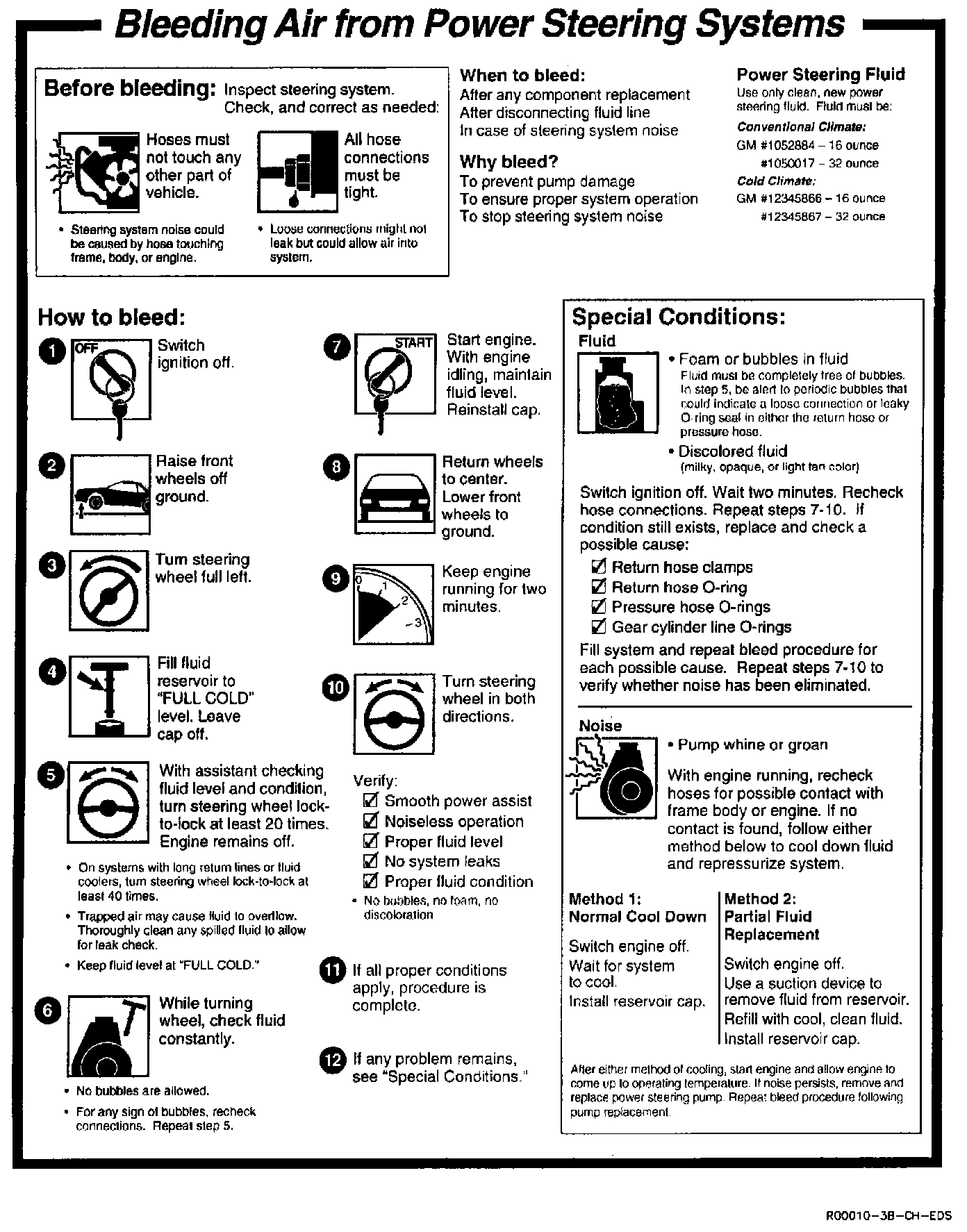 To bleed the power steering system follow the procedure in the illustration.