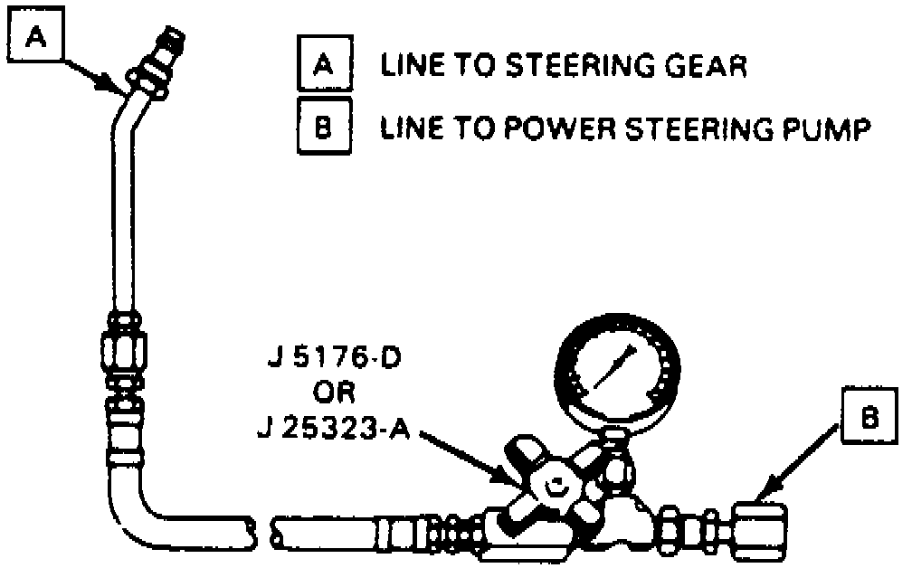 NOTE: When performing system test procedures, power steering pressures can easily exceed 1000 psi. Extreme caution must be exercised when performing these tests to prevent personal injury.