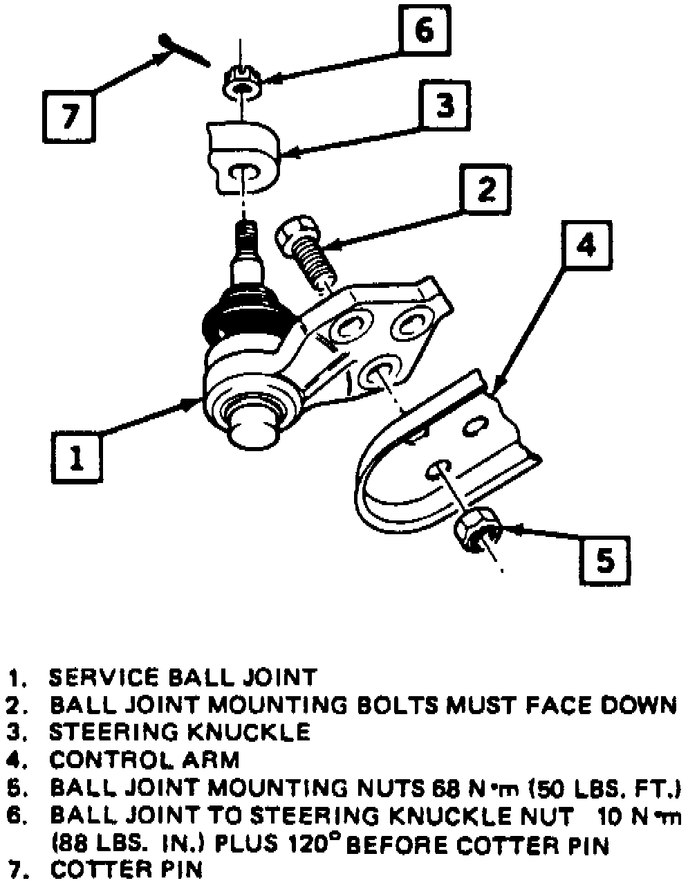 8. Reverse procedure to install. Tighten new ball joint attaching nuts to specifications, Fig. 5.