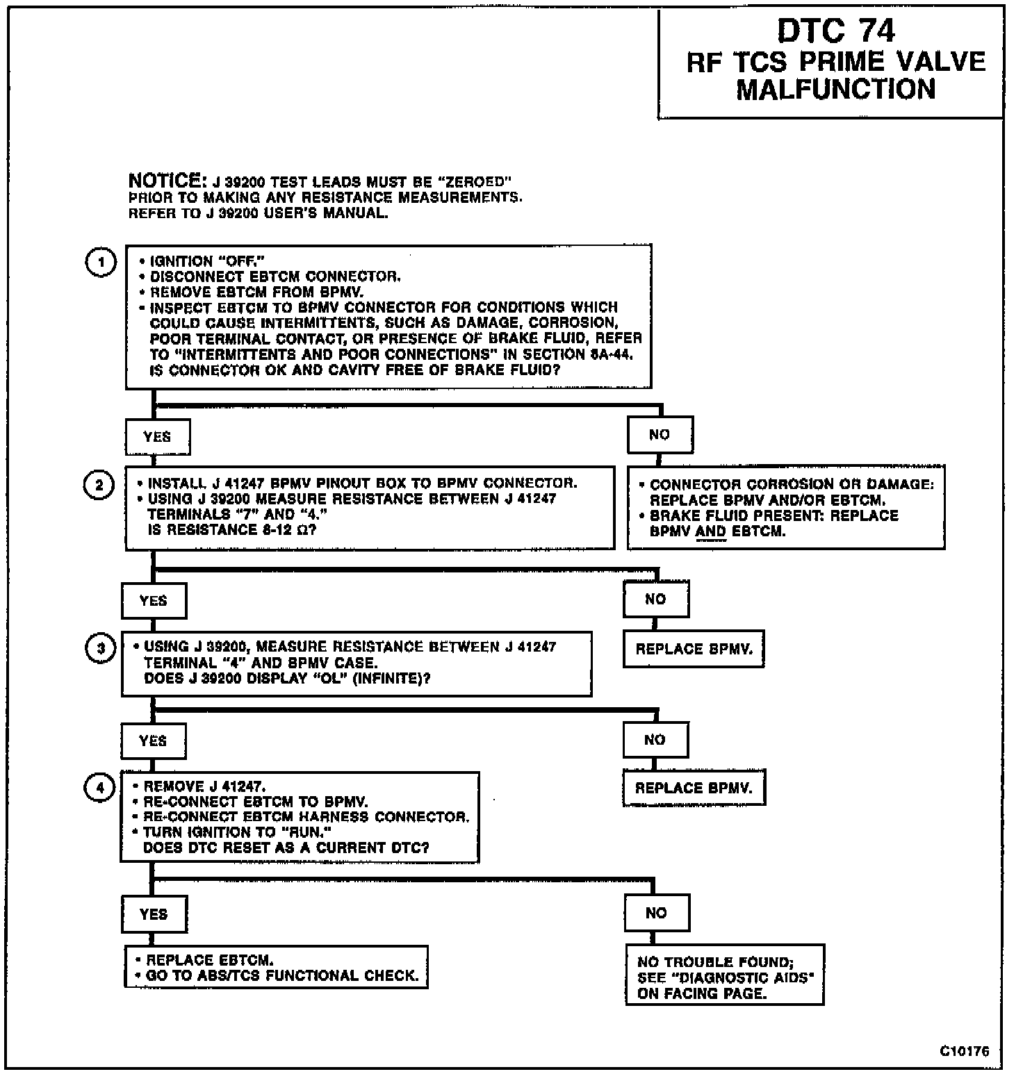 4. Checks for continued DTC setting after validating that the circuitry and the solenoid valves are good. If DTC resets, the EBCM/EBTCM is likely malfunctioning.