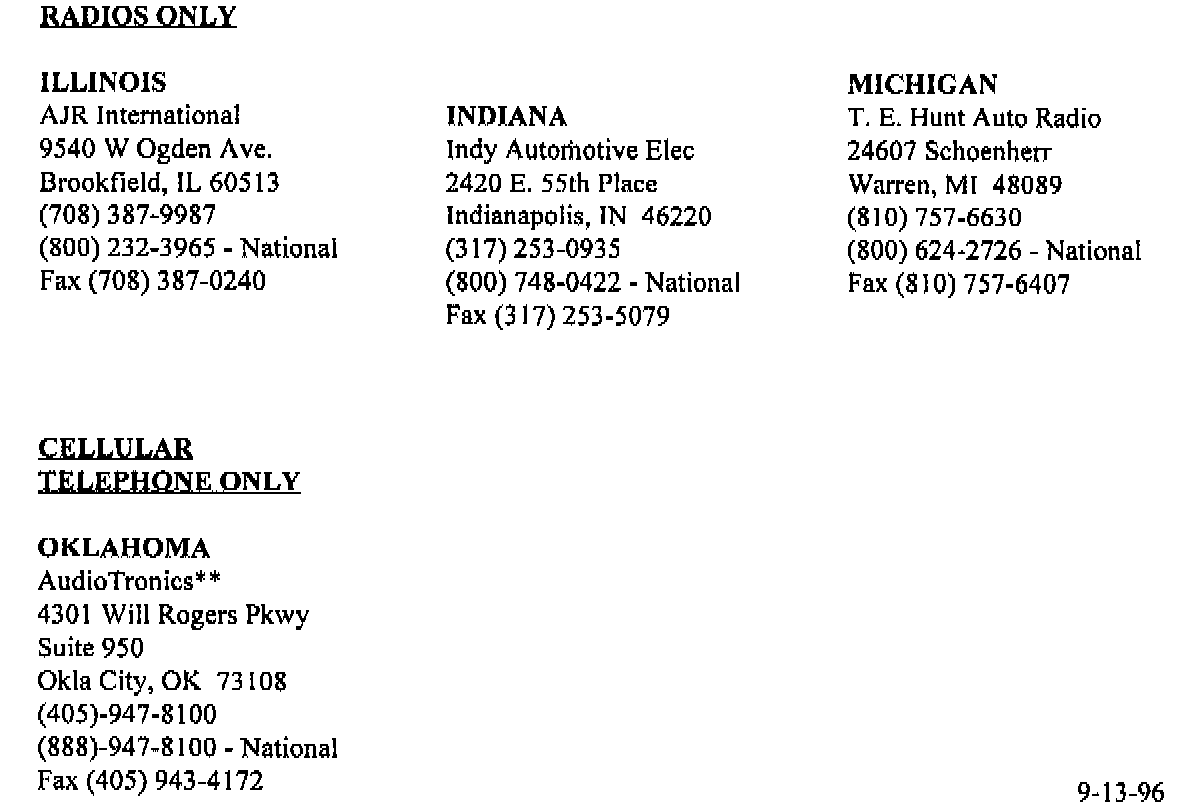 Repairs to the vehicle or the audio system can usually be done very quickly and the vehicle returned to the customer that day. If the diagnosis indicates that the radio needs to be replaced, remove the radio from the vehicle and order an exchange radio from your local AC Delco radio exchange center. There are 28 approved AC Delco exchange centers nationally (listing attached). If your local exchange center does not have the required exchange radio, it is important that you contact the AC Delco locator service. This service can be found on the Service Parts TRACS system 1-800-433-6961, prompt 4. It will be necessary to request overnight shipping so that the owner's vehicle is retained at your dealership for only one night.