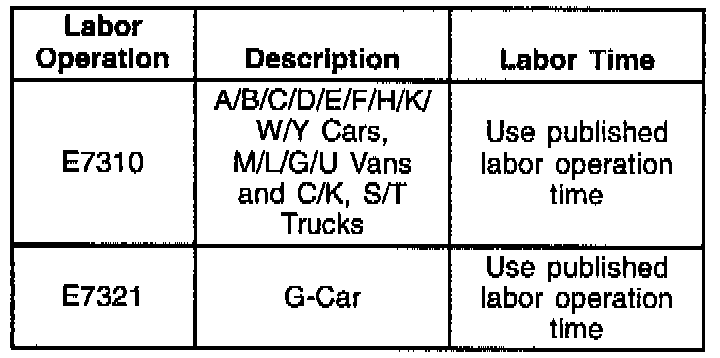 For vehicles repaired under warranty, use the table.