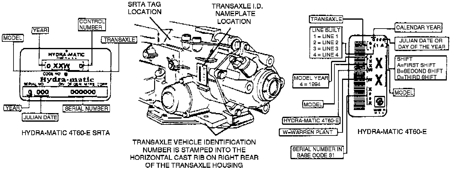 This transaxle may be identified by codes stamped into the horizontal cast rib on the right rear side of the transaxle housing,