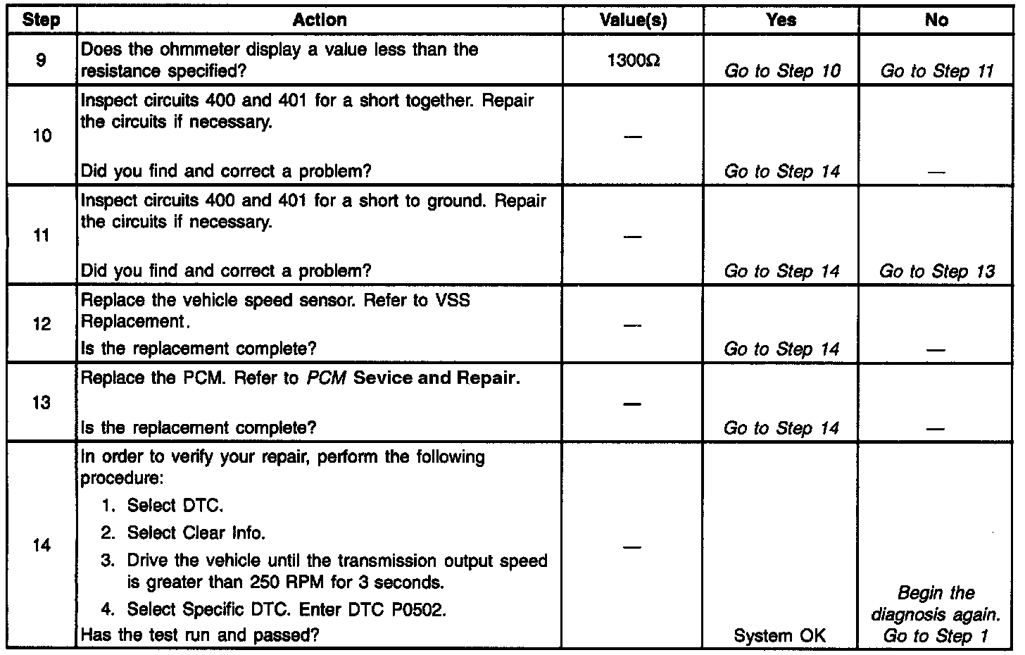 3. This Step verifies that there are no opens in the circuitry from the vehicle speed sensor to the PCM connector.