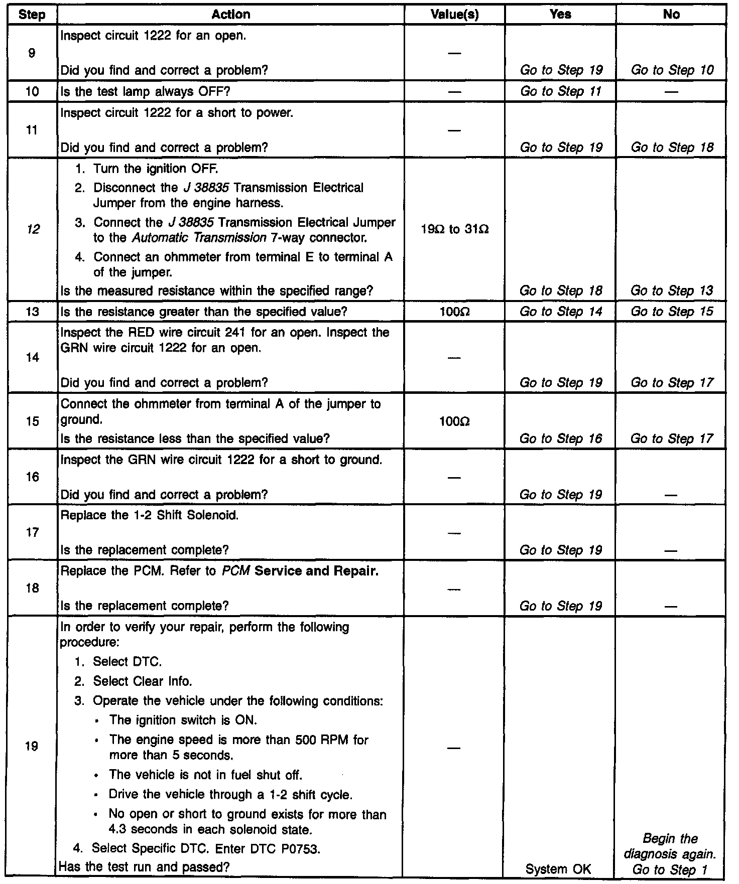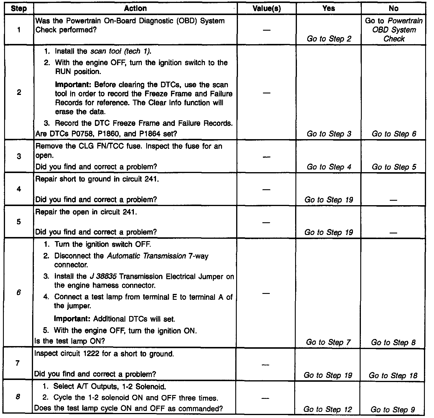 12. This Step verifies that the 1-2 shift solenoid has neither shorted across its windings nor increased its resistance.