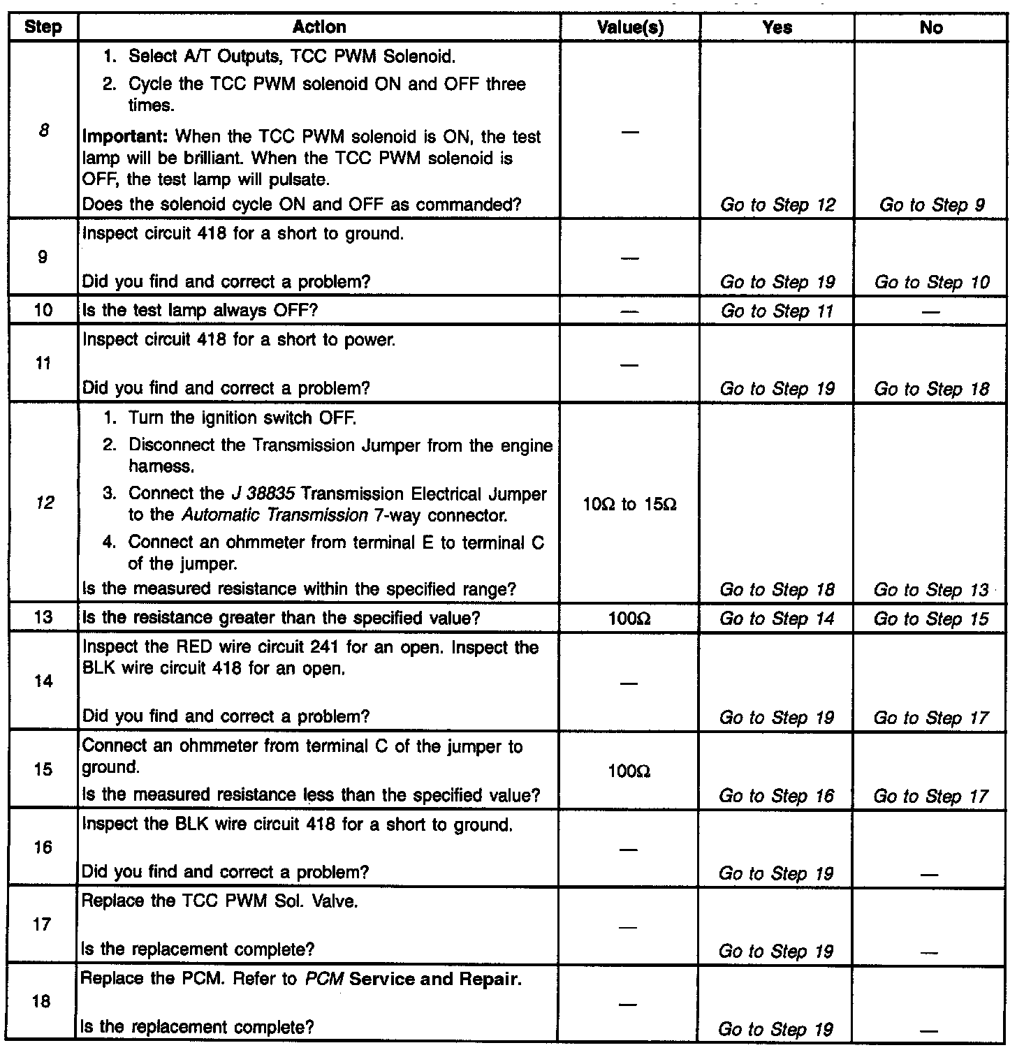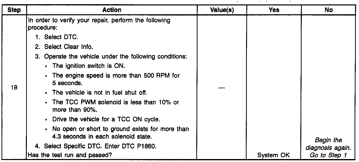12. This Step verifies that the TCC PWM solenoid is not shorted across its windings or increased its resistance.