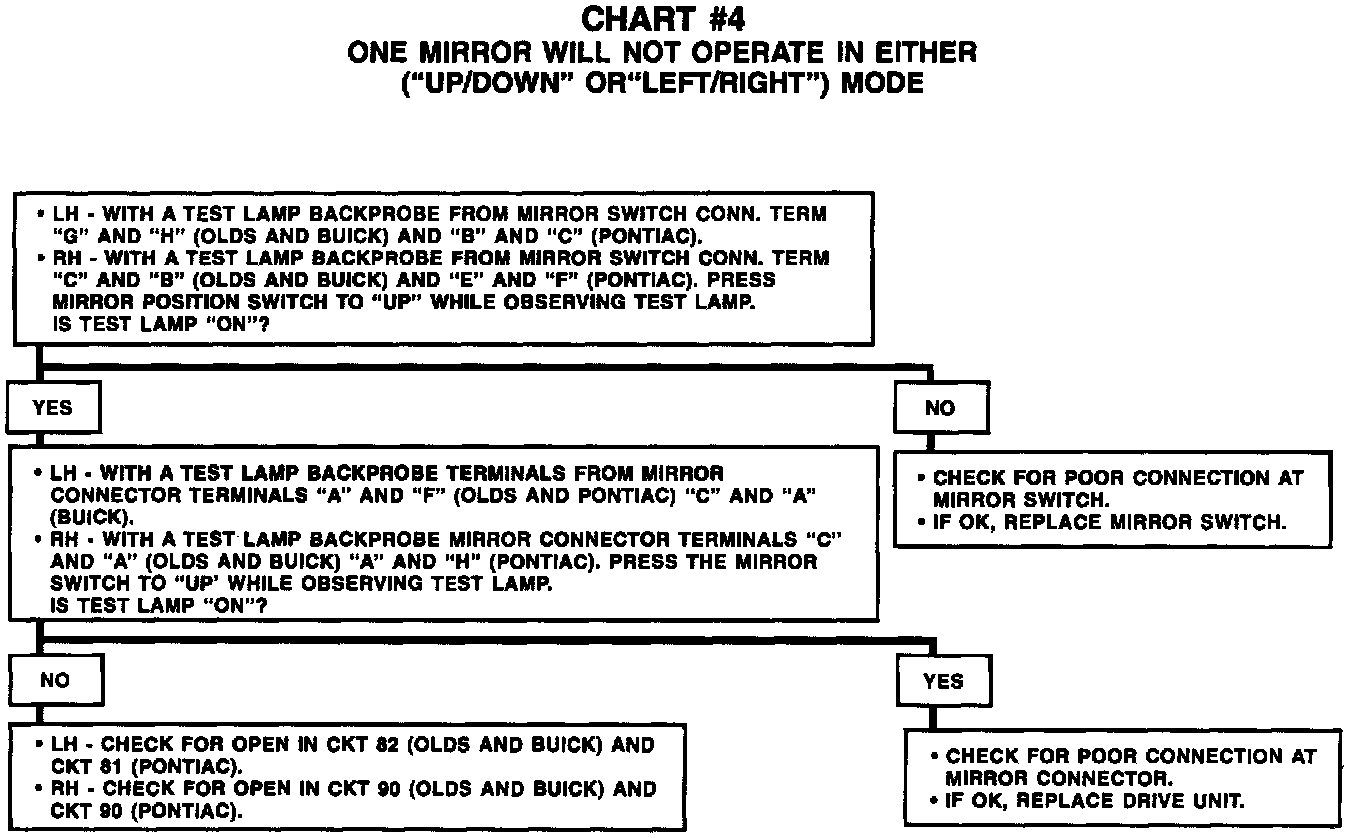 Chart #4 One Mirror will Not Operate In Either (UP/DOWN/LEFT/RIGHT) Mode: