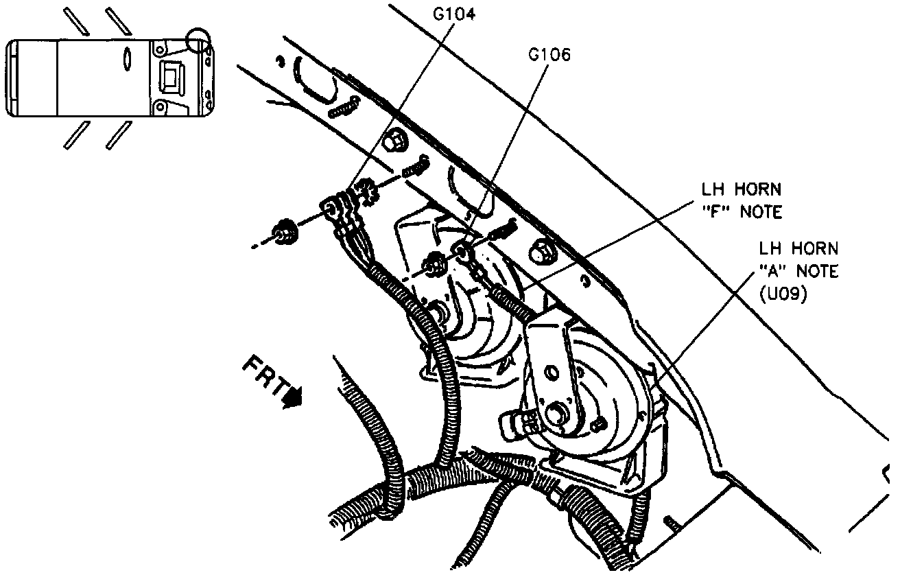 LH Front Of Engine Compartment, Attached To Upper Rail: