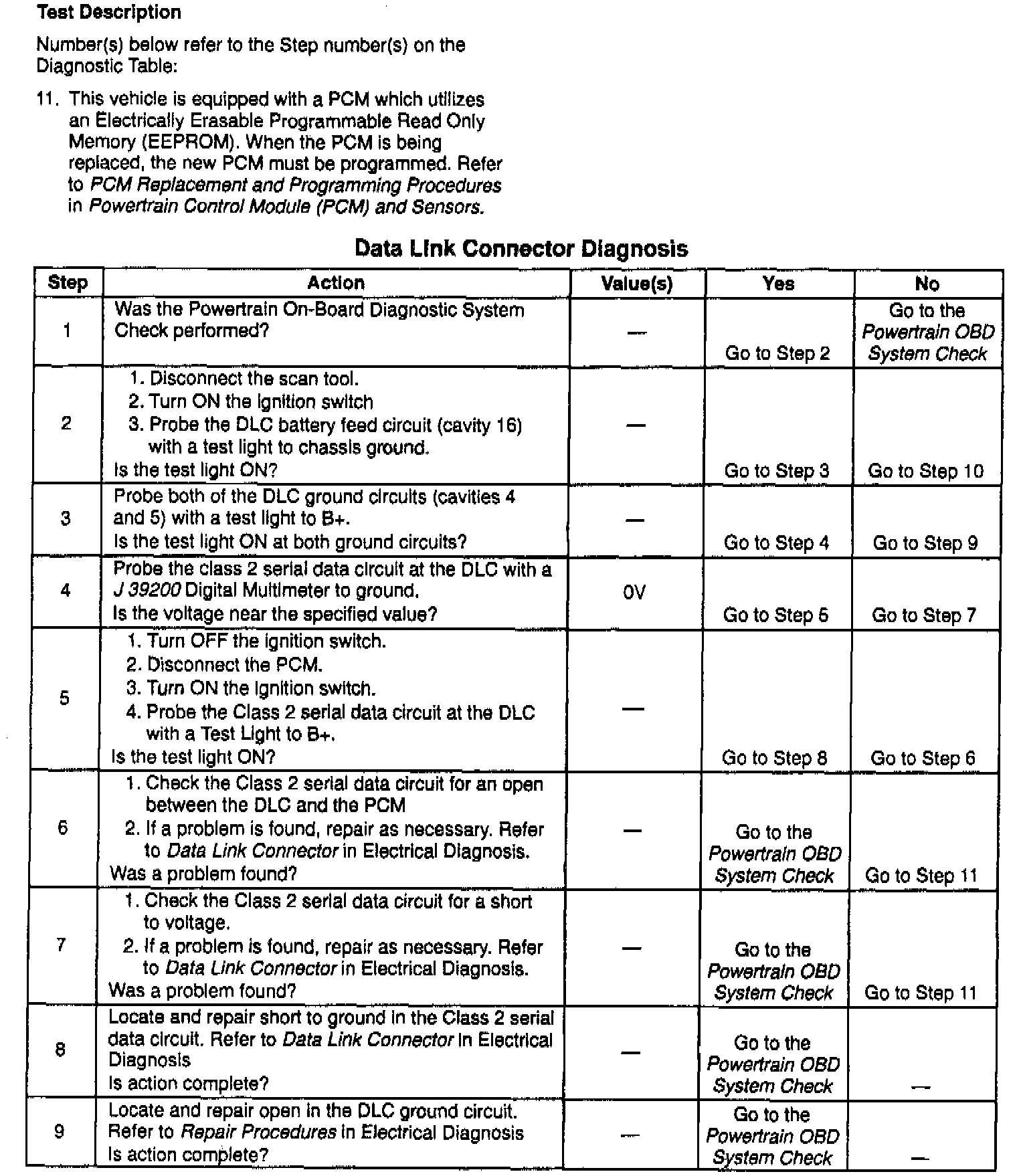 This bulletin is being issued to replace the Data Link Connector Diagnosis in Driveability and Emissions Section 6E. The revised table allows proper diagnosis of a short to ground on the class 2 serial data circuit on vehicles equipped with a Remote Function Actuator (RFA) module (RPO AU0).