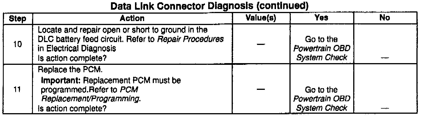 Section 6E3 - Driveability and Emissions - Replace Data Link Connector Diagnostic Table