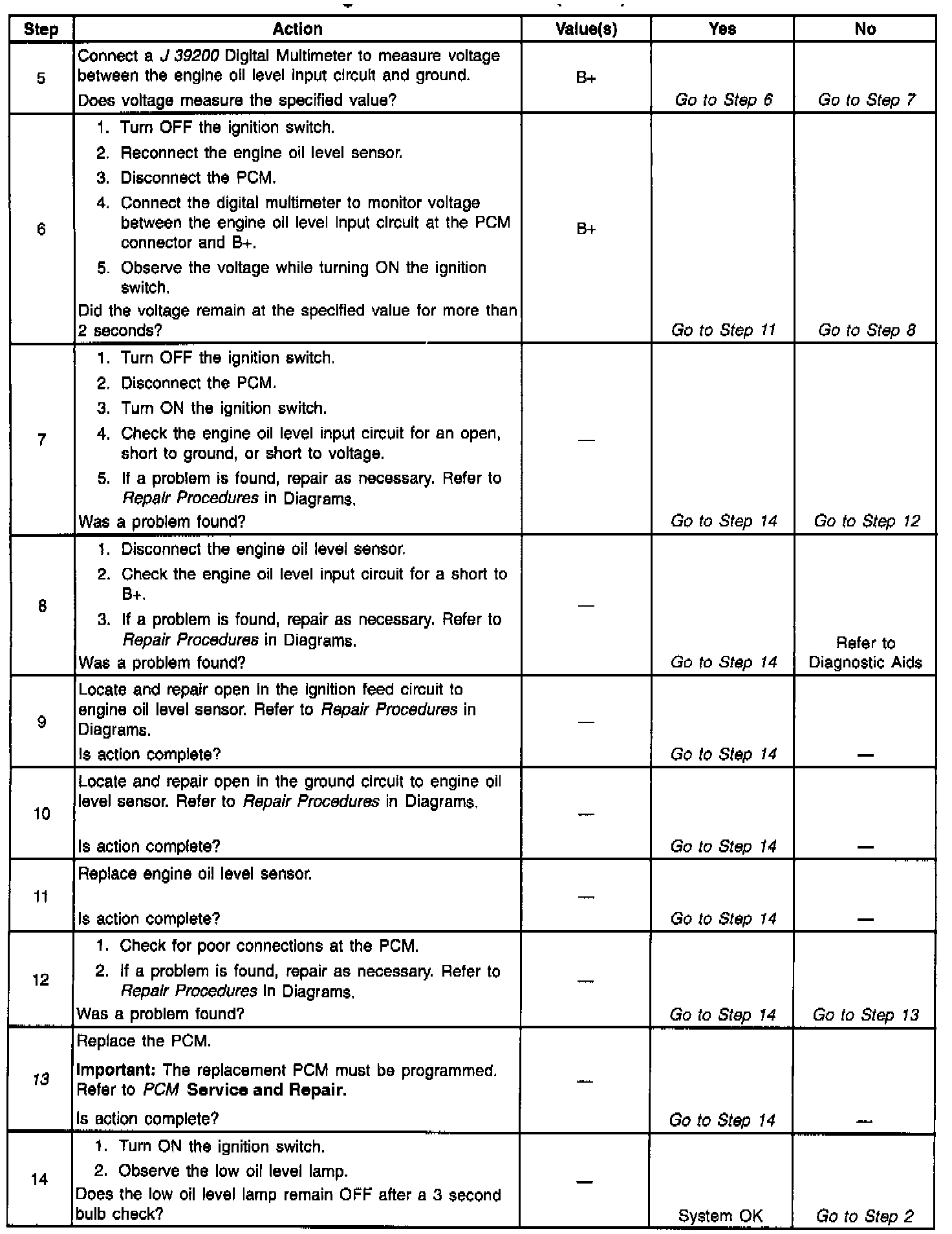 Engine Oil Level Sensor/Switch Diagnosis