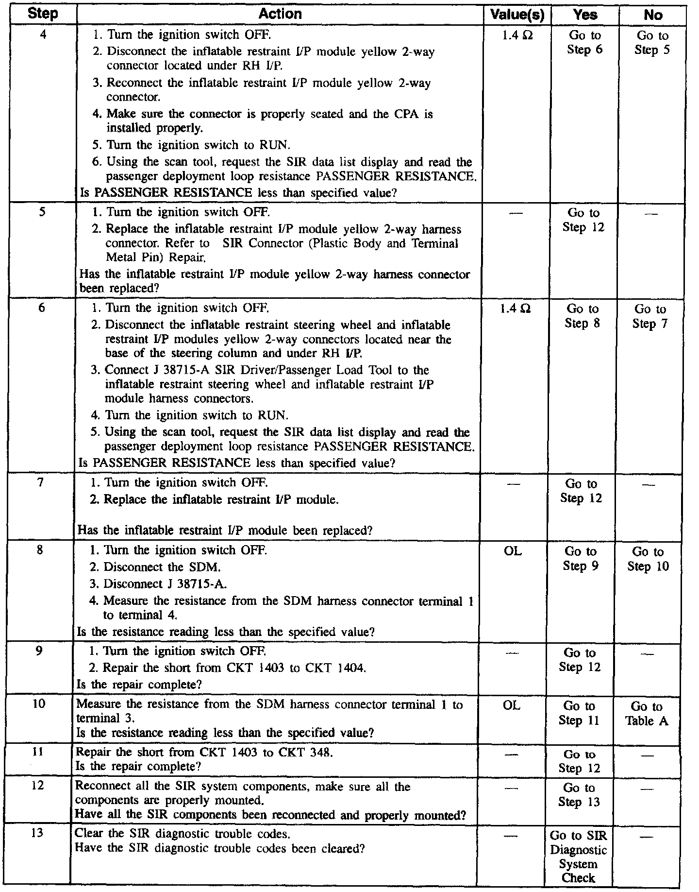 ^ The passenger deployment loop resistance is less than 1.4 ohms. The passenger deployment loop consists of the following components: