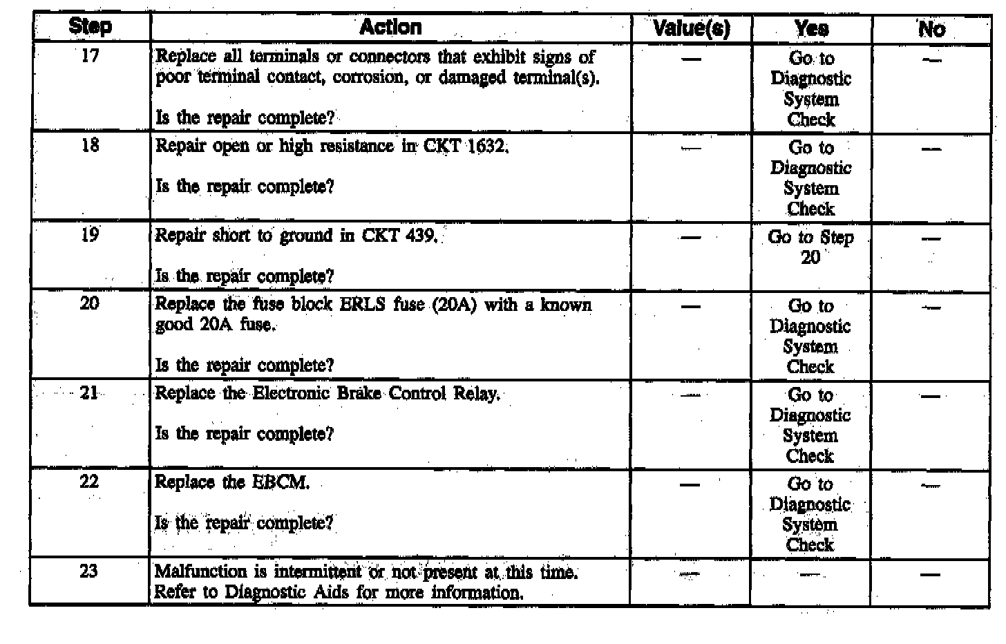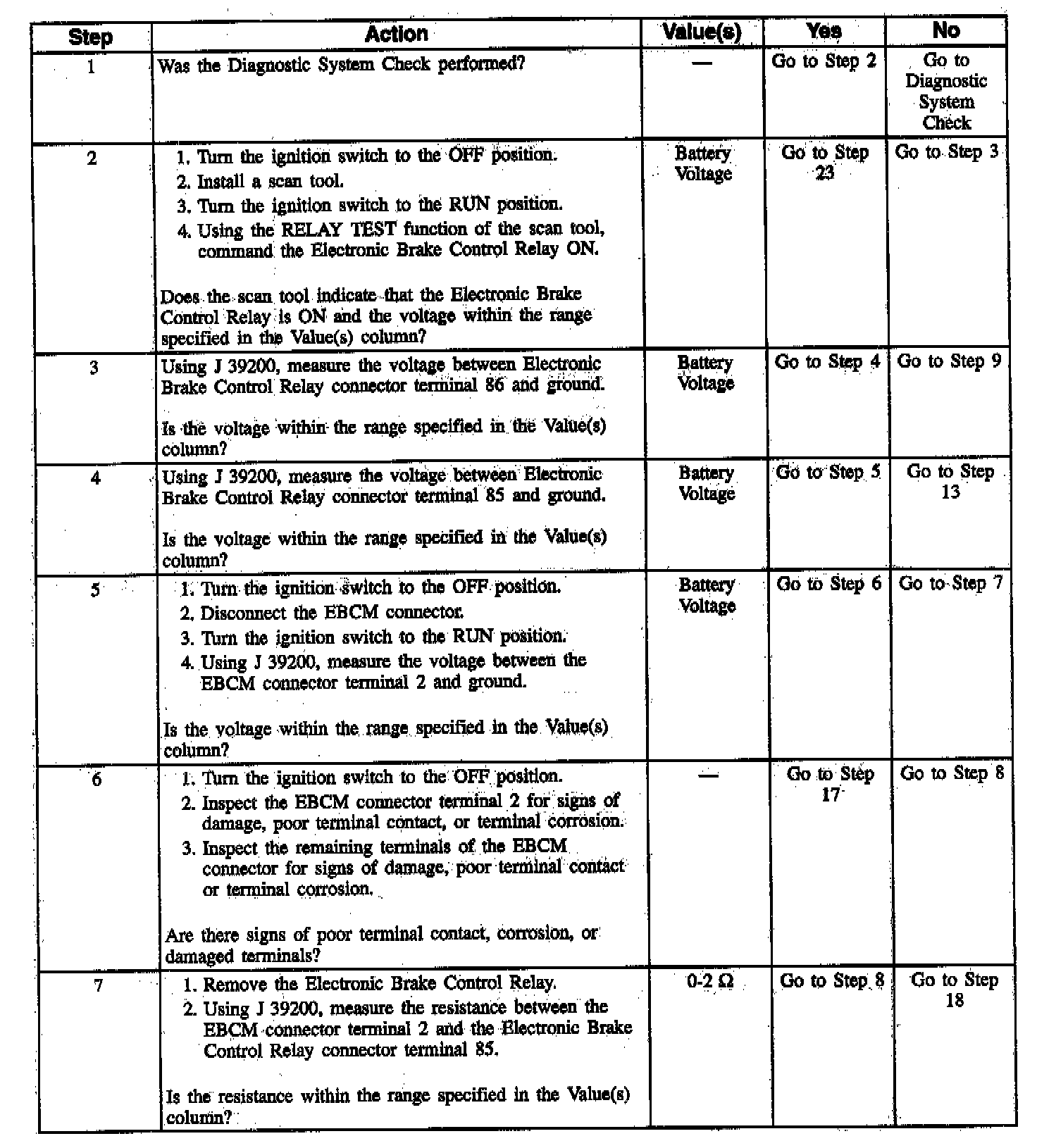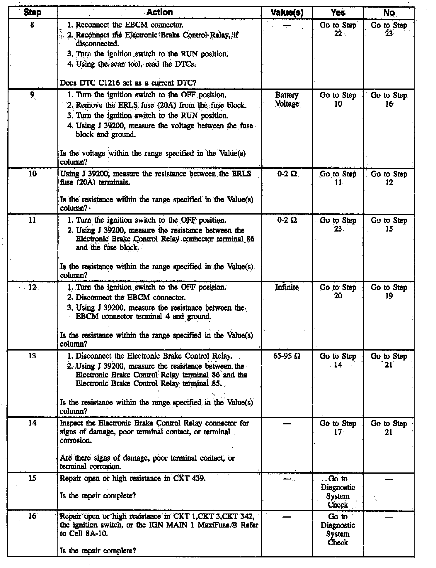 DTC C1216 can be set anytime after the Electronic Brake Control Relay is commanded ON. This test detects an open in the Electronic Brake Control Relay coil circuit. An open in this circuit will not allow the Electronic Brake Control Relay to be energized thus preventing power to the motors and solenoids. A DTC C1286 will be set with DTC C1216 if the rear channel is not expected to be in the home position.