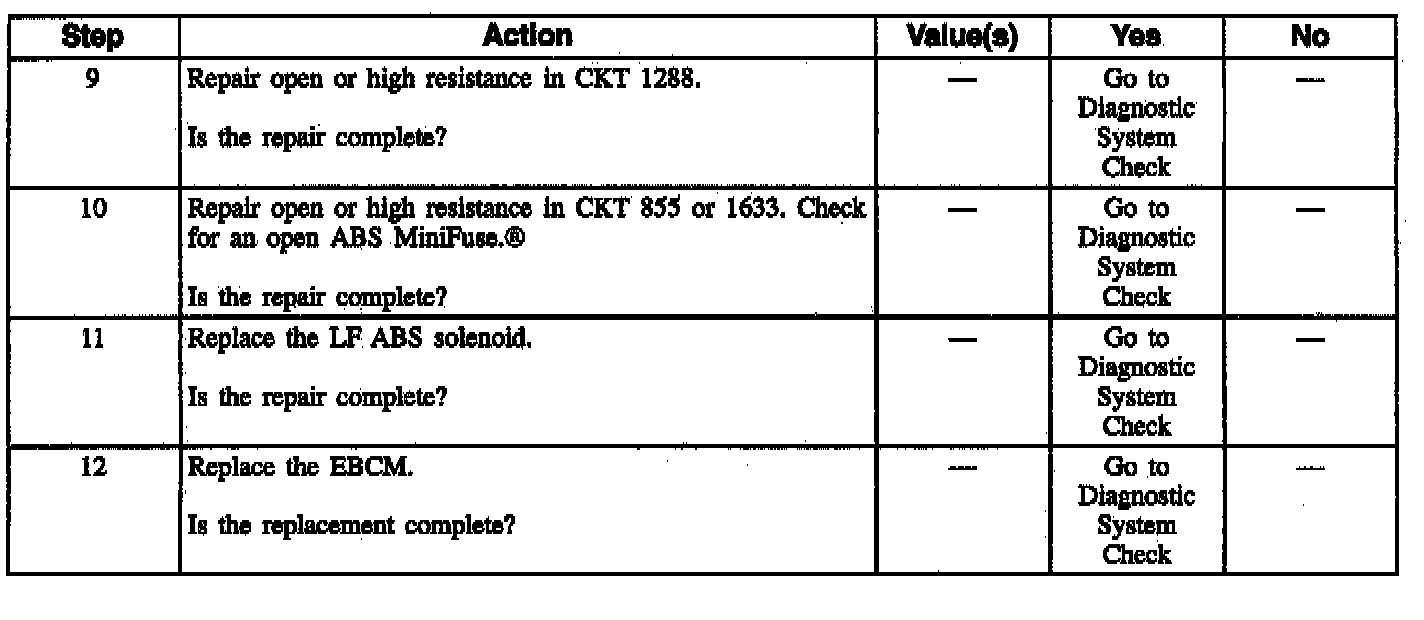 This DTC identifies a solenoid that cannot be energized due to an open in its circuitry, or a solenoid that is always energized due to a short to ground in its circuitry between the EBCM and the solenoid. An open will not allow proper ABS operation, but the short to ground simply turns ON the solenoid. A path for base brakes is still allowed once the motor rehomes and the check valve is lifted off its seat when the ignition switch is turned to the RUN position.