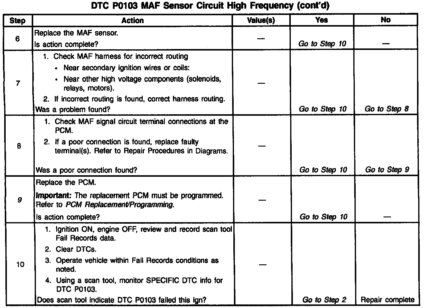 If DTC P0103 cannot be duplicated, the information included in the Fail Records data can be useful in determining vehicle mileage since the DTC was last set.