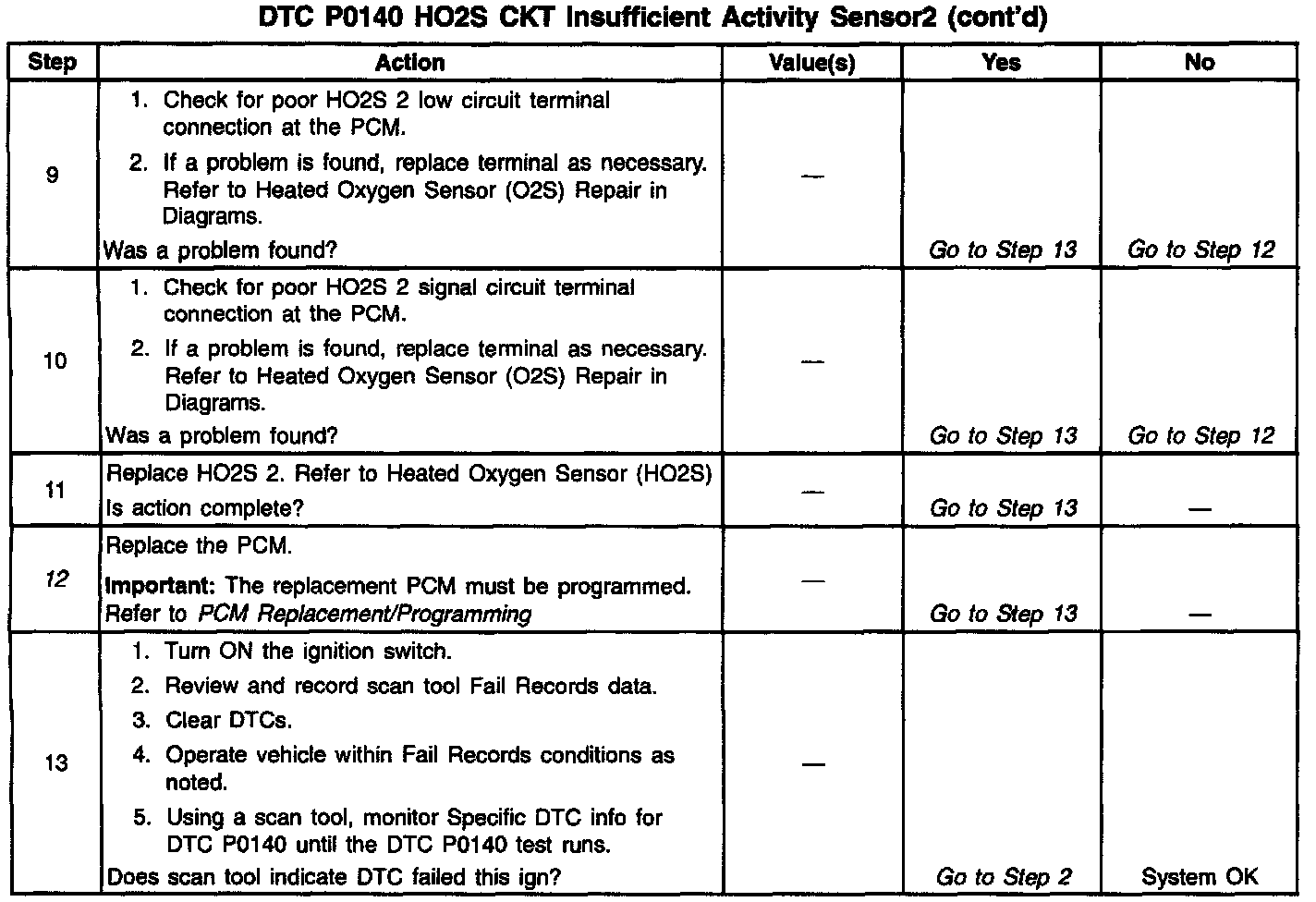 3. If the DTC P0140 test passes while the Fail Records conditions are being duplicated, an intermittent condition is indicated.