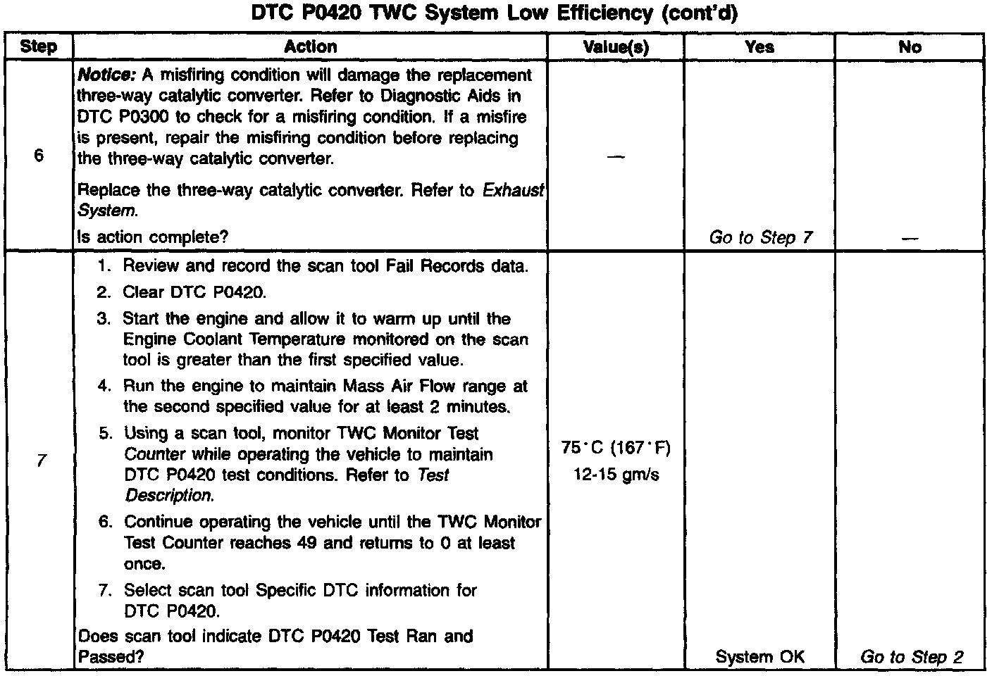 ^ The TWC Monitor Test Counter display on the scan tool may be used to monitor the progress of the TWC diagnostic. To complete the TWC diagnostic, the counter must be allowed to increment to 49 and roll over to 0 at least once. With a failed TWC, the counter may have to increment to 49 and roll over to 0 three times or more.