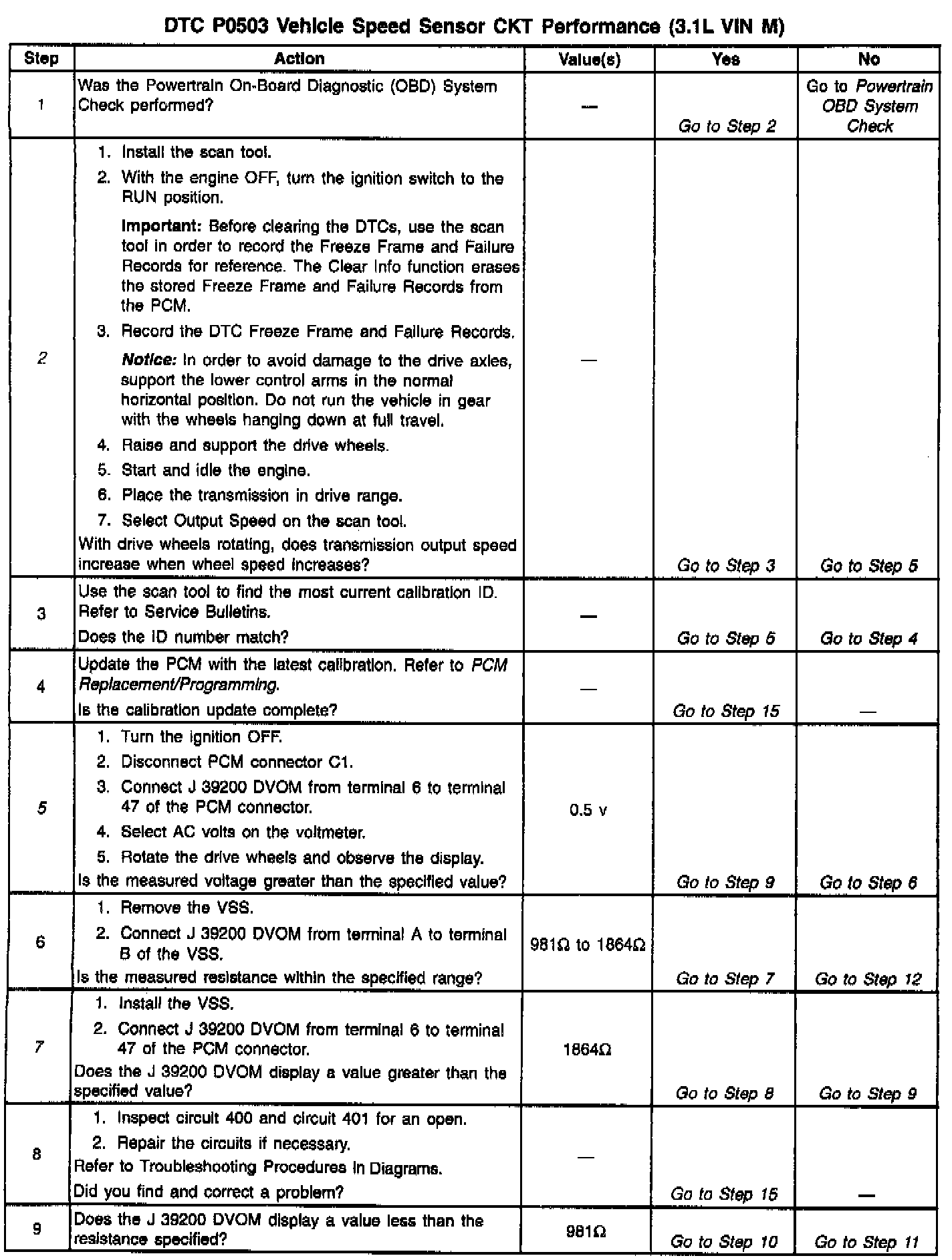 If the PCM detects a low vehicle speed with a high engine speed while in a drive range, then DTC P0503 sets. DTC P0503 is a type A DTC.
