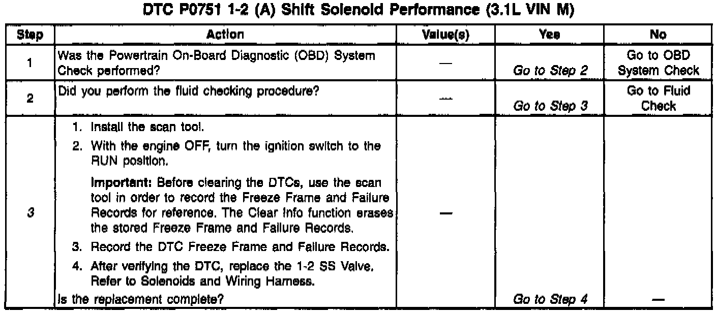 3. This step ensures that P0751 Freeze Frame and Failure Records are recorded. Once the DTC is verified, replace the 1-2 shift solenoid.