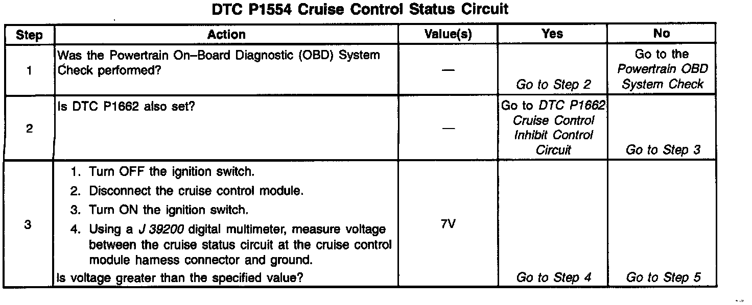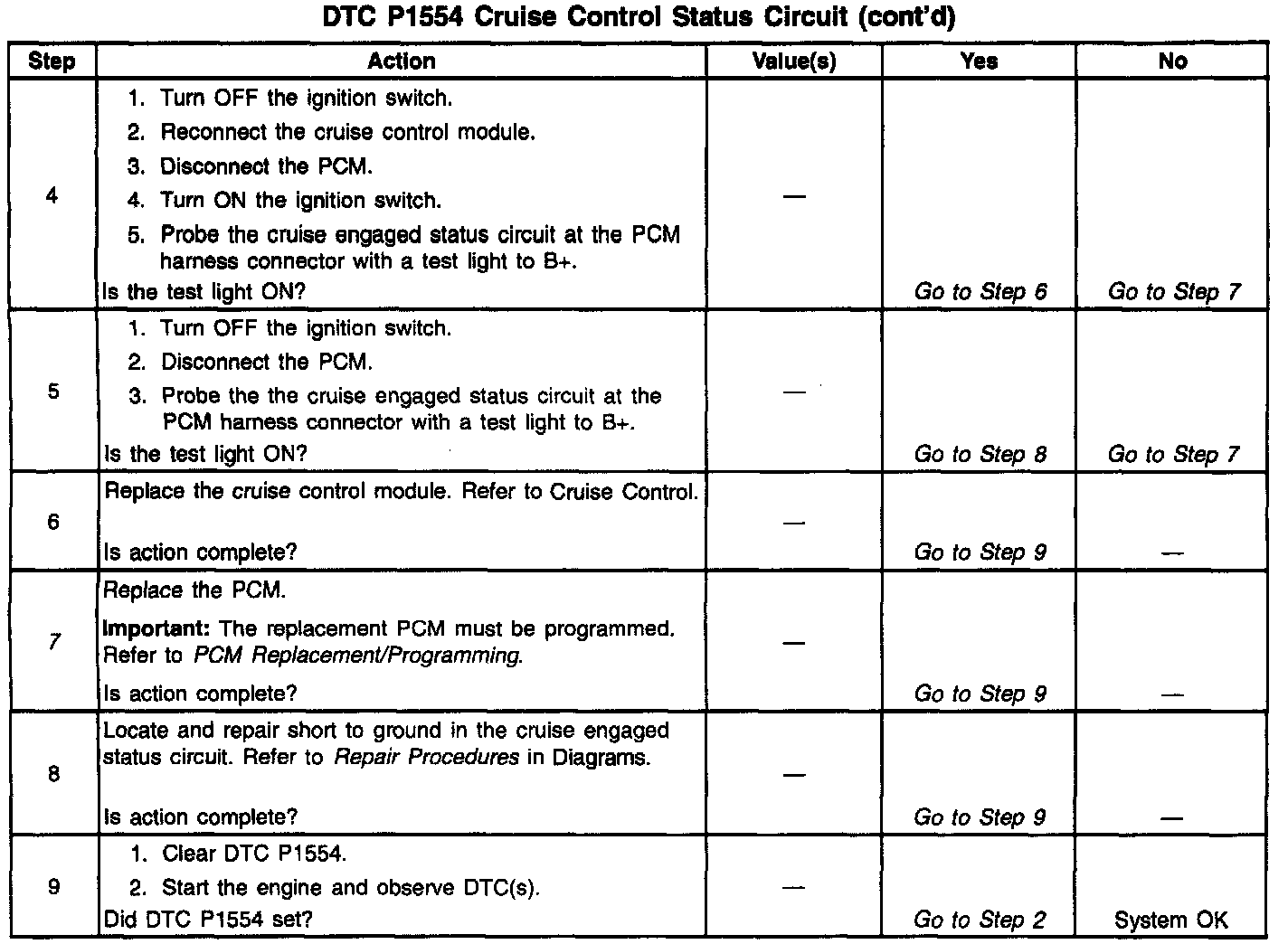 ^ Damaged harness. Inspect the wiring harness for damage. If the harness appears to be OK, observe the Cruise Status display on the scan tool while moving connectors and wiring harnesses related to the Stepper Motor Cruise Control module. A change in the display will indicate the location of the fault.