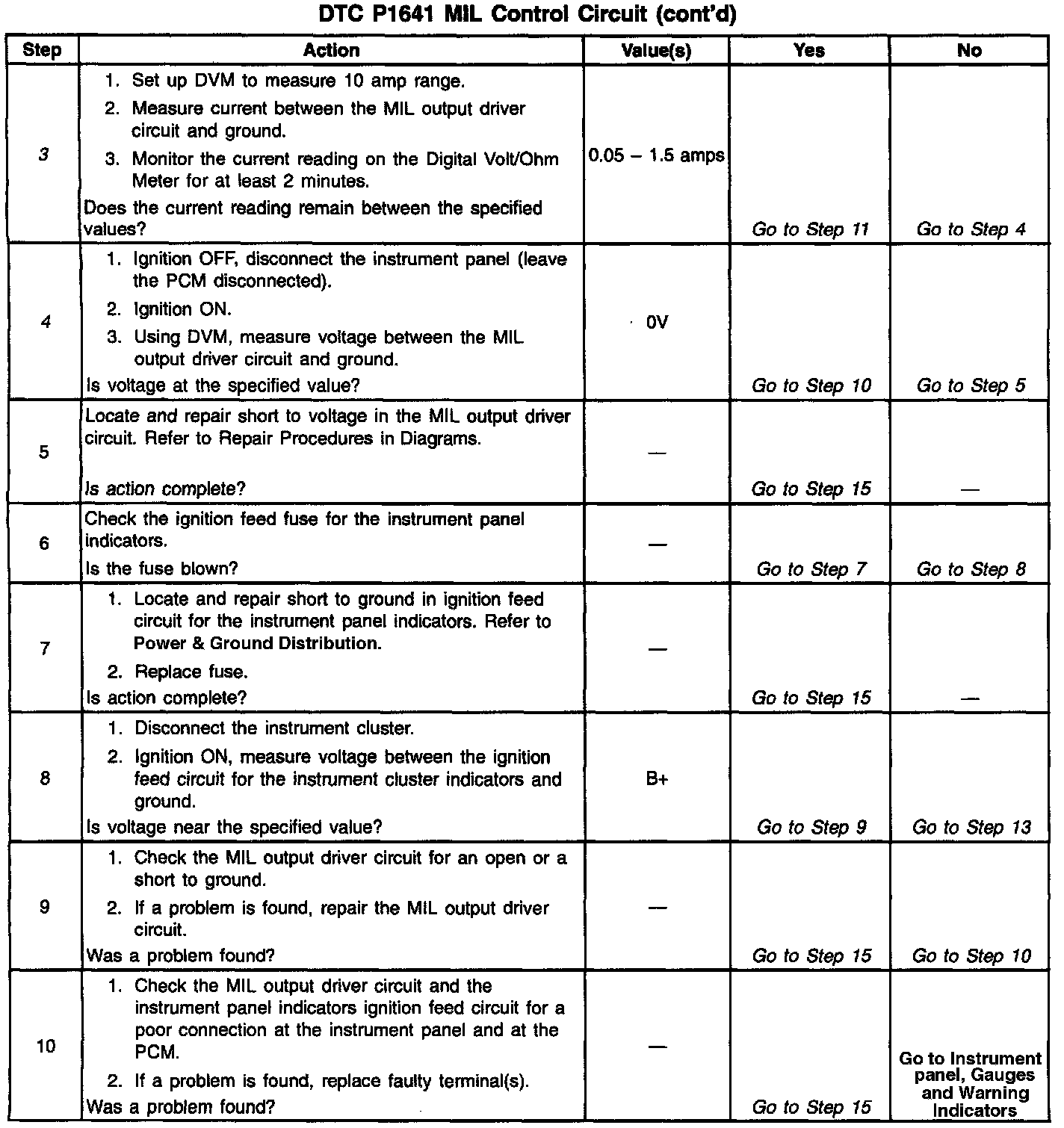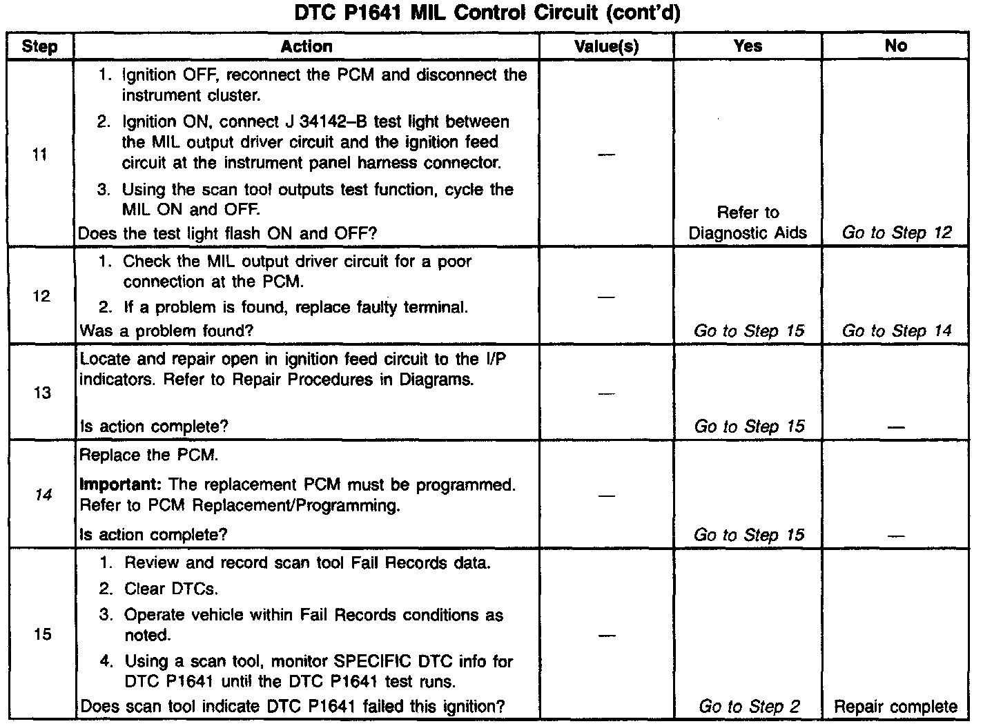 Unlike the Quad Driver Modules (QDMs) used in prior model years, ODMs have the capability of diagnosing each output circuit individually. DTC P1641 set indicates an improper voltage level has been detected on ODM A output 1, which controls the Malfunction Indicator Lamp (MIL).