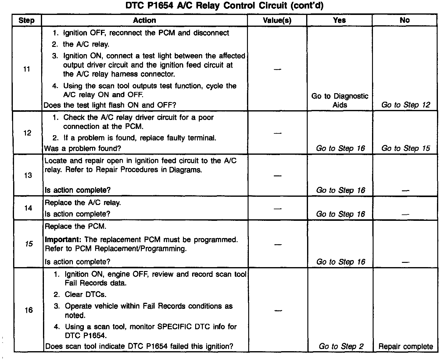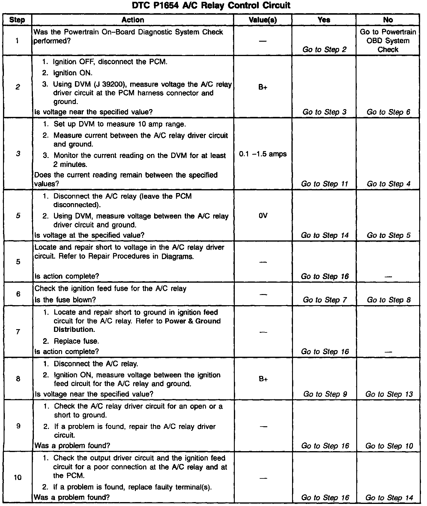 Unlike the Quad Driver Modules (QDMs) used in prior model years, ODMs have the capability of diagnosing each output circuit individually. DTC P1654 set indicates an improper voltage level has been detected on A/C relay control circuit.