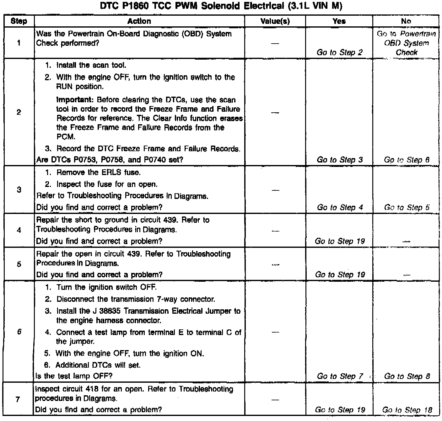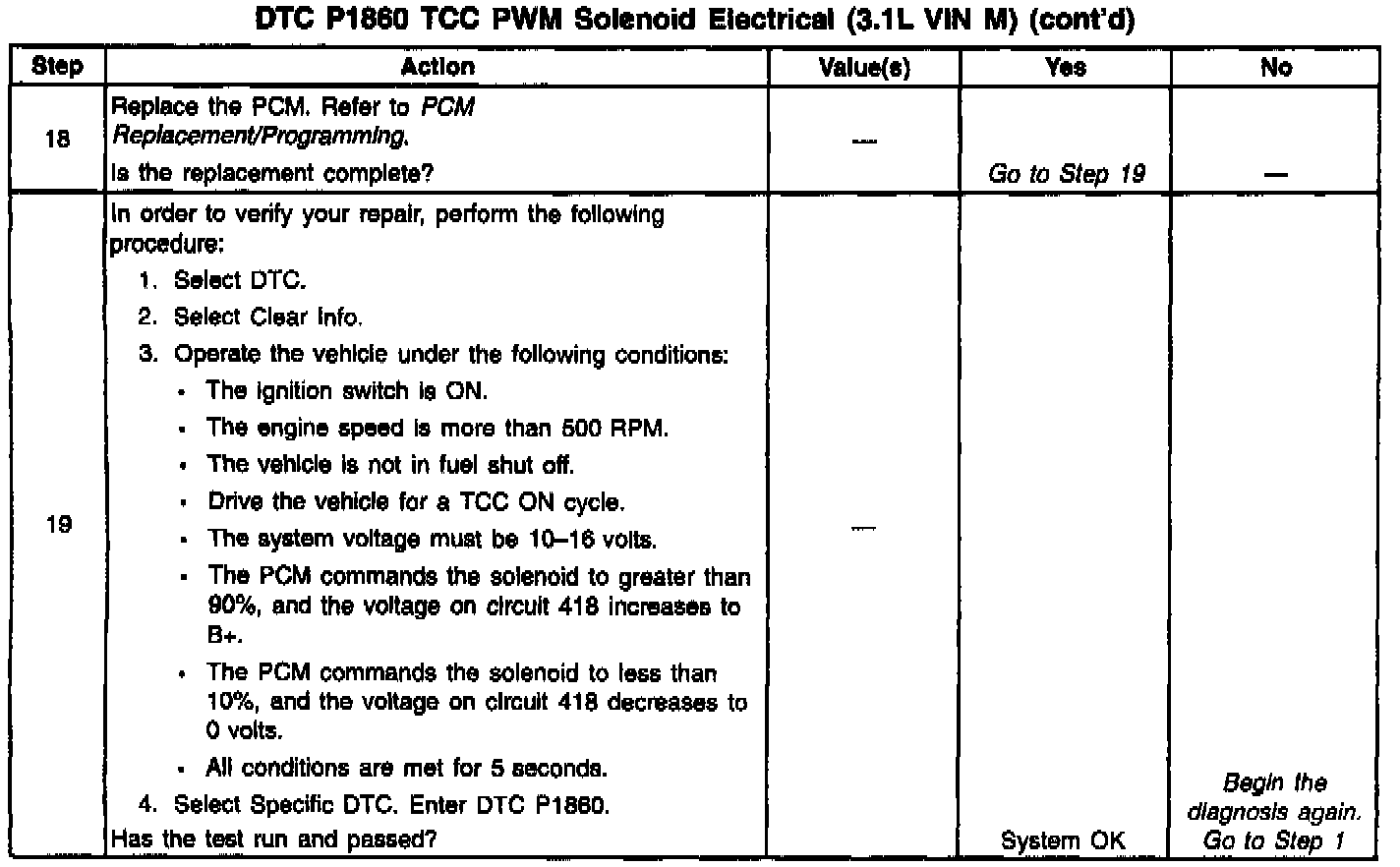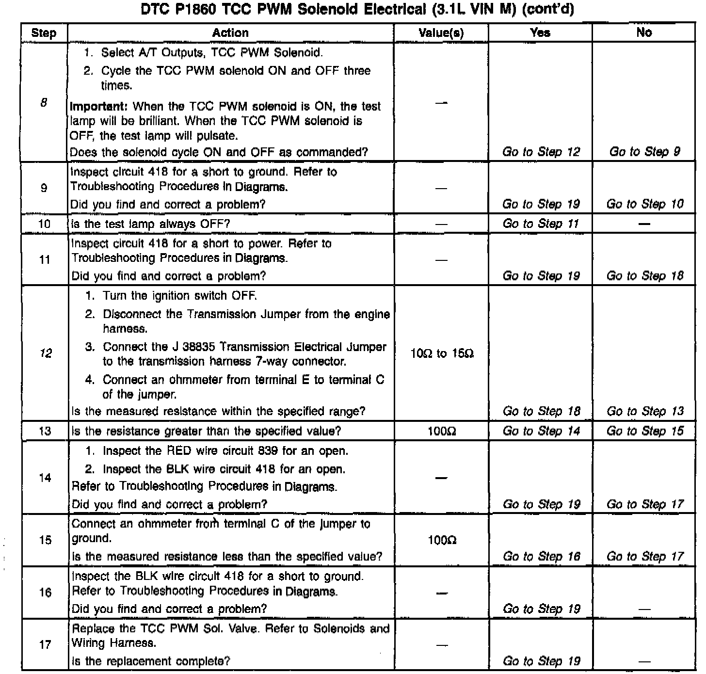 12. This step verifies that the TCC PWM solenoid is not shorted across its windings or increased its resistance.