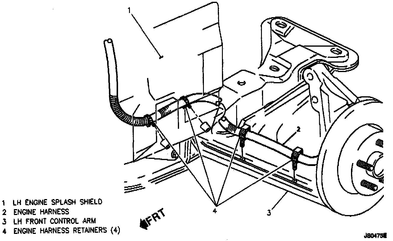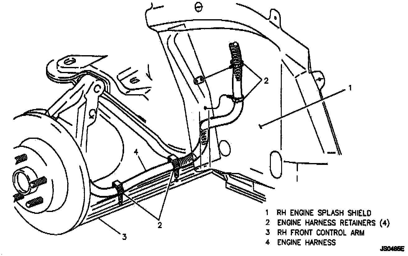 6. Harness attaching clips to control arm and splash shield.