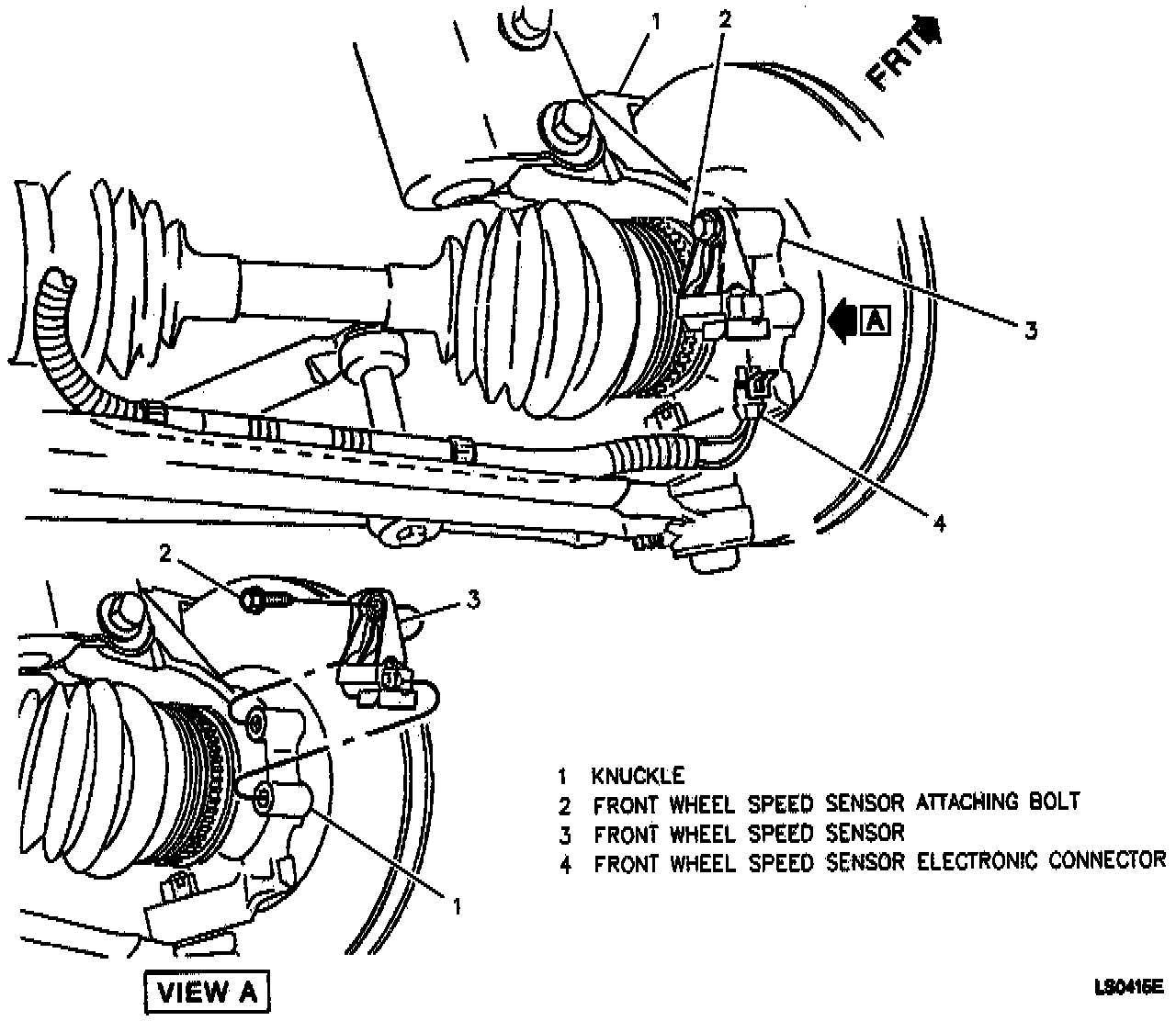3. Front sensor electrical connector to front wheel speed sensor.