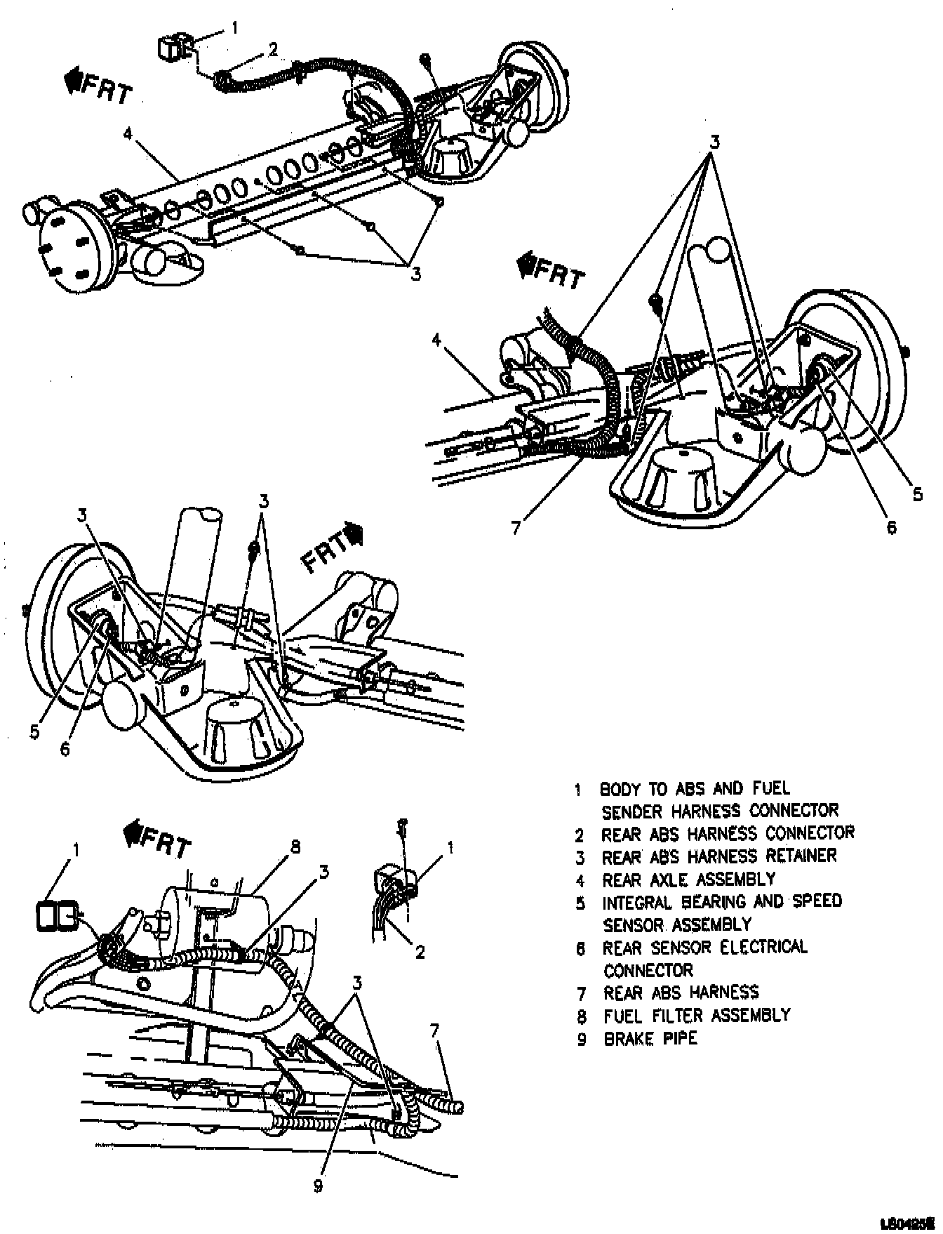 3. Rear ABS axle. harness electrical connector to body to ABS and fuel sender connector.
