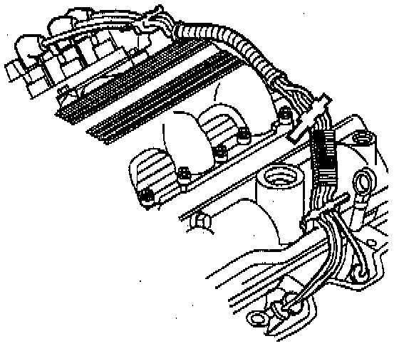 2. Remove the rear ignition wire harness at the upper intake manifold and at the spark plugs.
