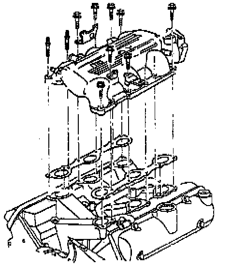 6. Install the lower intake manifold bolts. Apply sealant GM P/N 12345739 to the threads of the bolts.