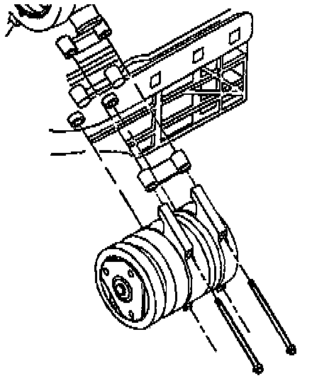 13. Loosely assemble the A/C compressor bracket and the upper compressor bolts. Retain the bolts and the bracket to the compressor for ease of assembly.