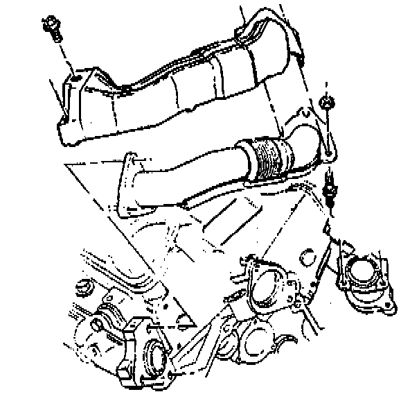 5. Remove the coolant by-pass pipe at the coolant pump and from the exhaust manifold. See Cooling System.