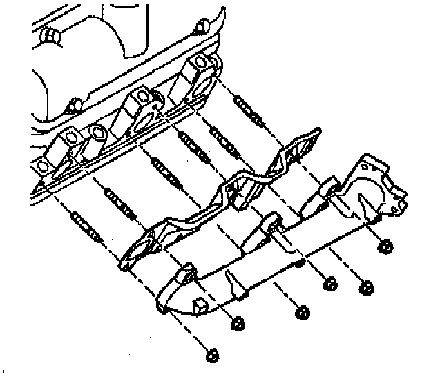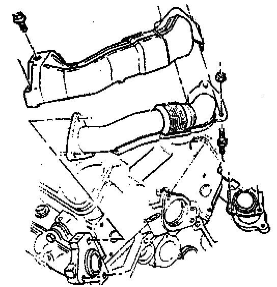 12. Install the crossover pipe to the exhaust manifolds.