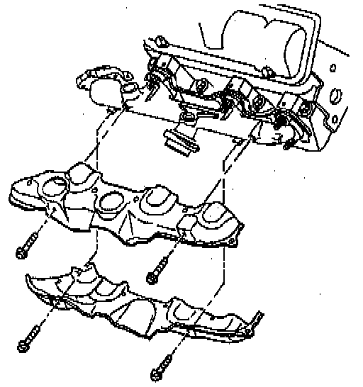 2. Install the exhaust manifold. Loosely, install the heat shield at this time.