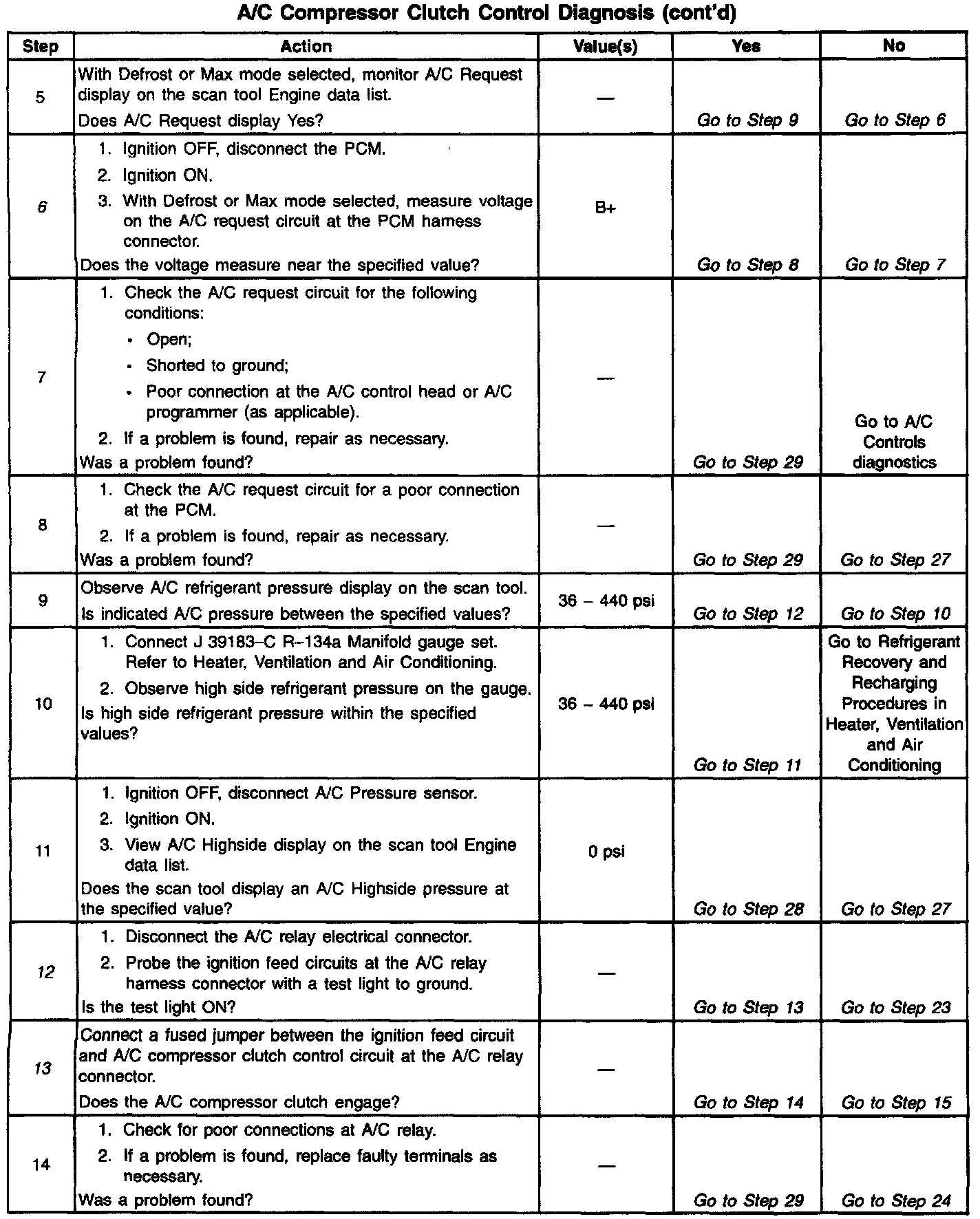 2. Stored Diagnostic Trouble Codes (That may not illuminate the Malfunction indicator Lamp) may disable the A/C compressor. This Diagnostic Table may lead to improper diagnosis and replacement of good parts if Diagnostic Trouble Codes are present.