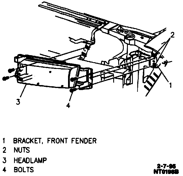 2. Headlamp bracket assembly screws.