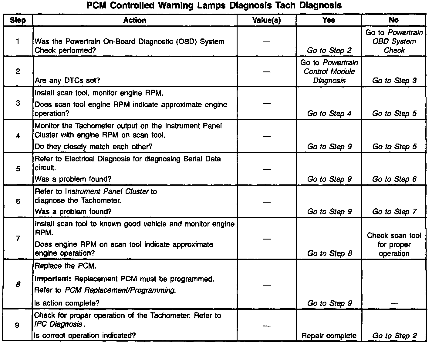 PCM Controlled Warning Lamps Diagnosis - Tachometer